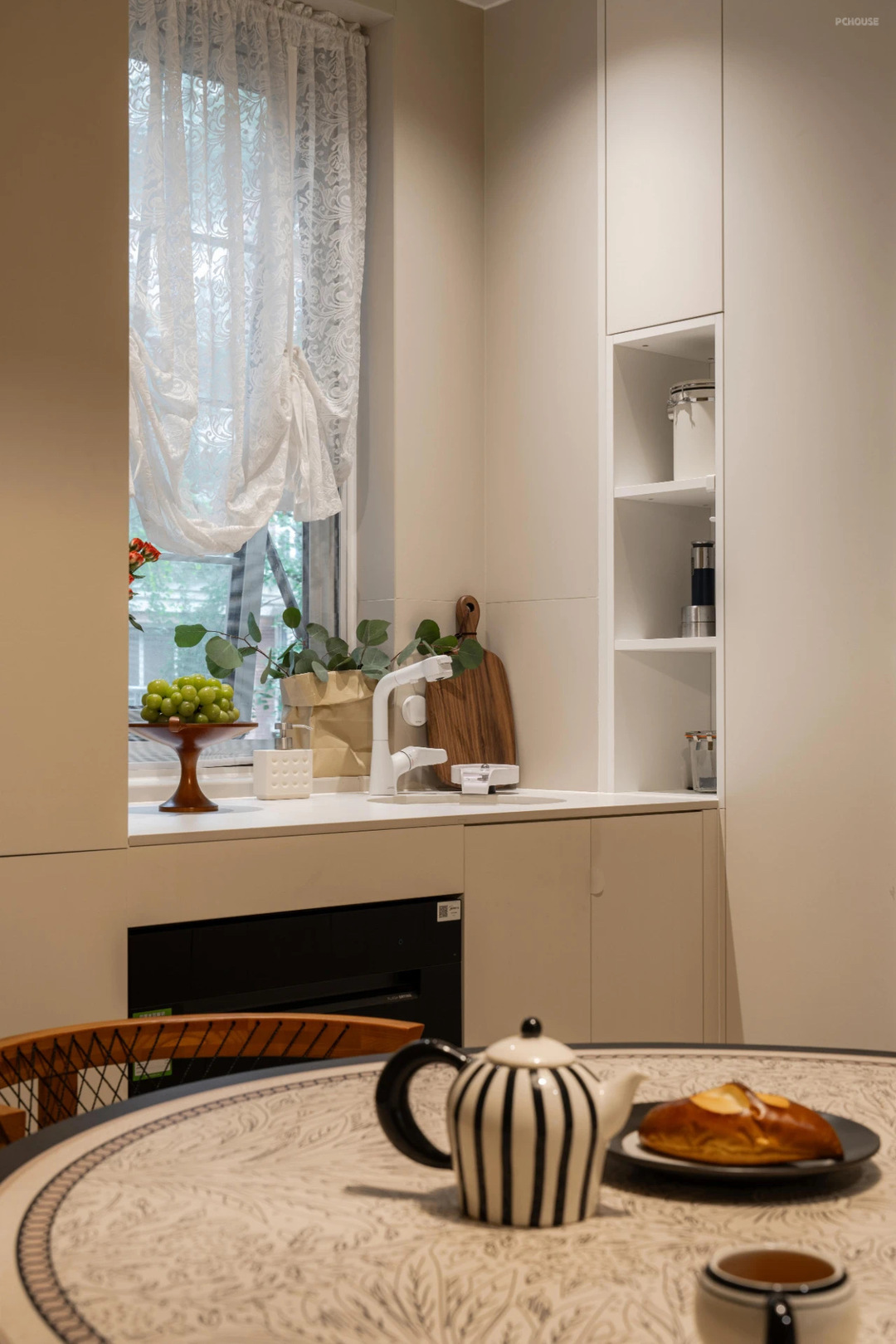 西厨左右两侧都做了开放式壁龛,收纳达人甚至放了一个mini电饭煲。