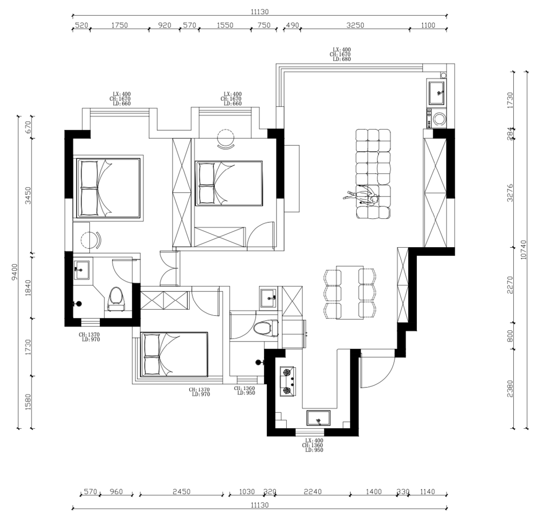 原始户型还算规整,考虑到业主的居住舒适度和生活习惯,我们对户型做了微调: