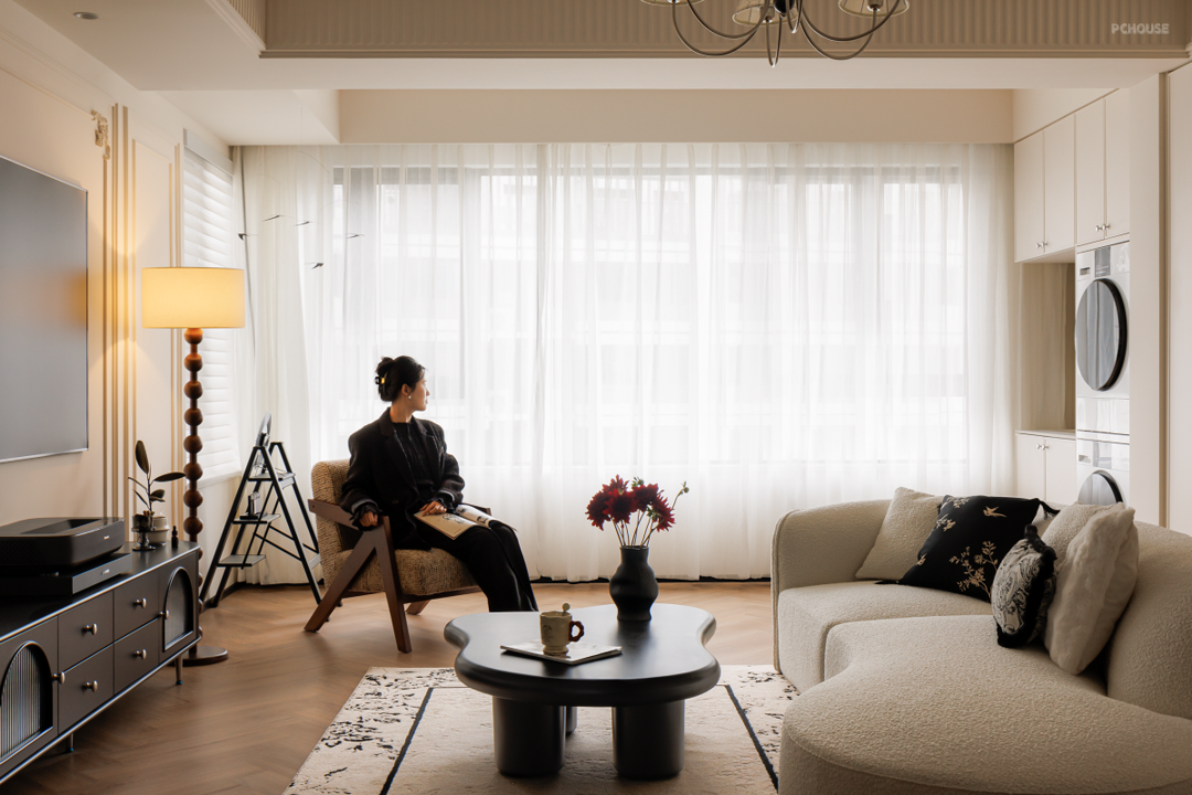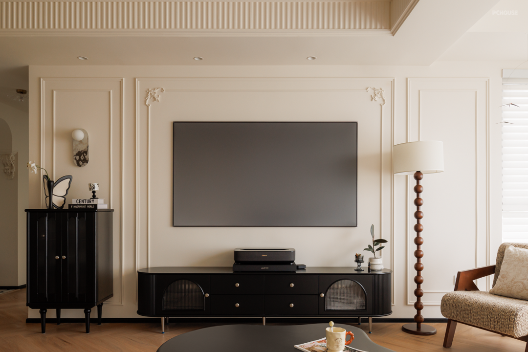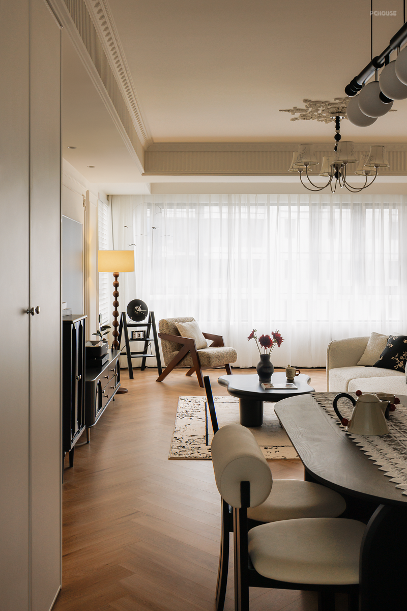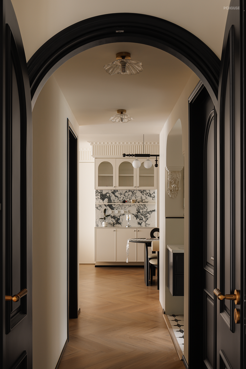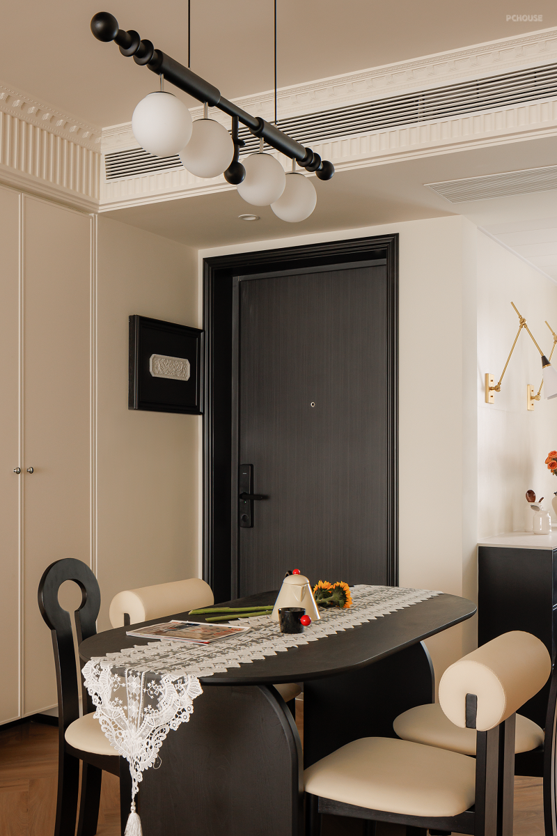 原始的精装交付并不能满足业主的审美需求,所以在前期沟通后,我们在不大改格局的基础上,遵循业主的喜好与感受,用黑白法式给空间定调,借助开放式布局让家人之间无间相处,自由格局、多个环形动线重塑交互空间,在满足家的通透同时,居住舒适度也整体提升不少。