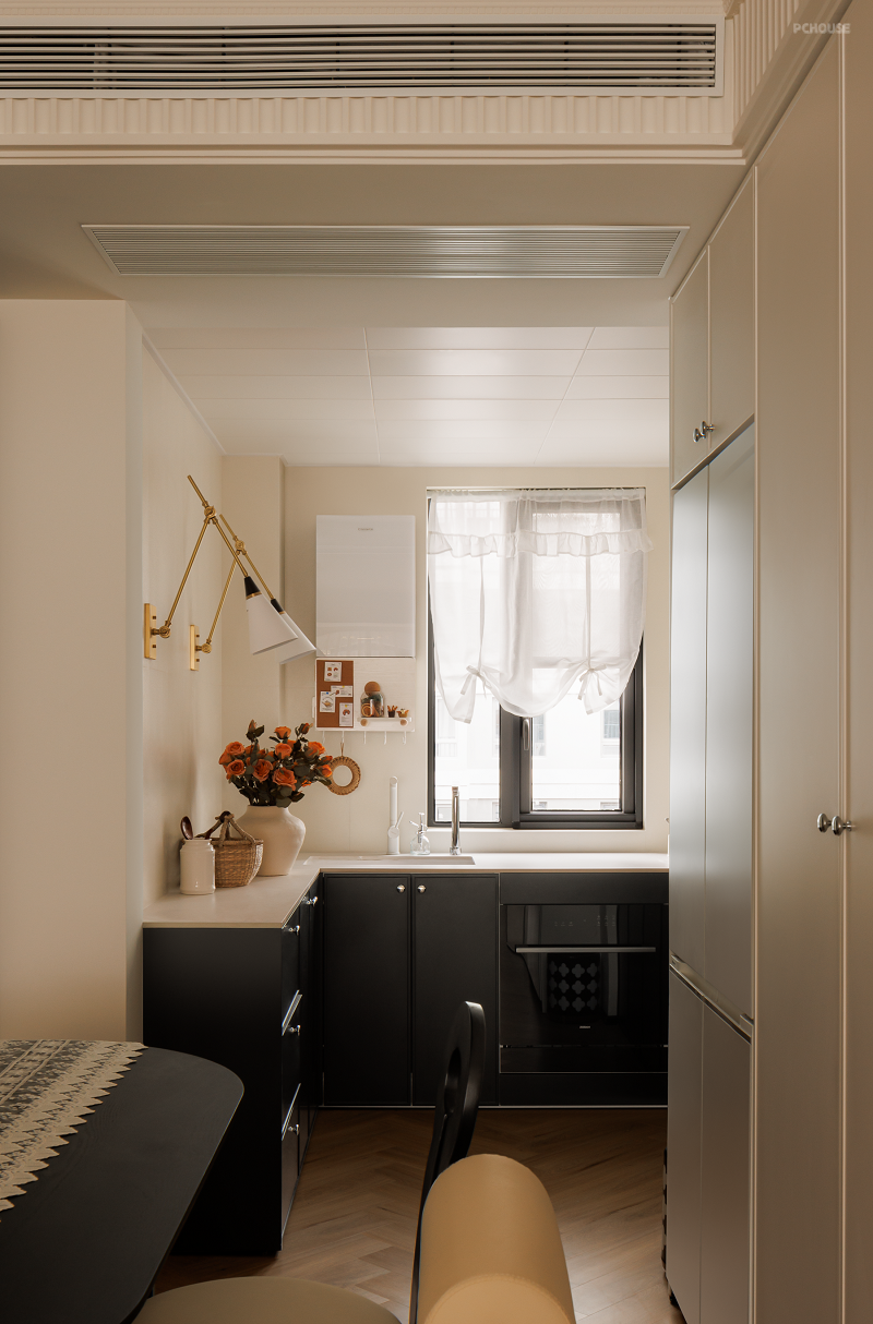 生活的意义就在于生活本身,餐厨空间一气呵成,增加收纳的同时,注重空间留白。