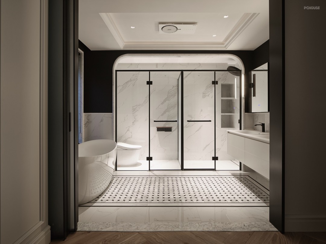卫生间三分离的设计,可以享受无与伦比的舒适。主卫门打开到最大限度,与外部空间流畅融合,这样不仅可以让屋主感受到现代居住的智能便捷,也可以在干湿区的分隔中有更多的空间释放,让舒适生活成为一种习惯。