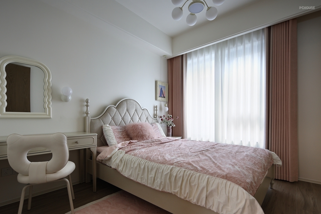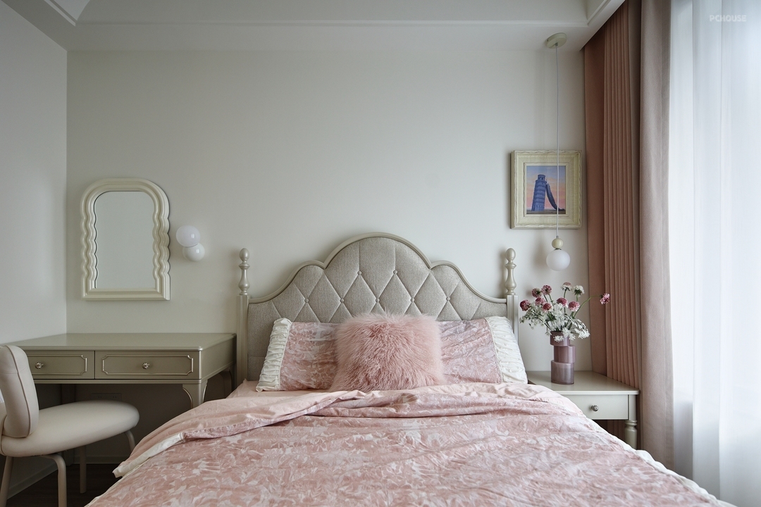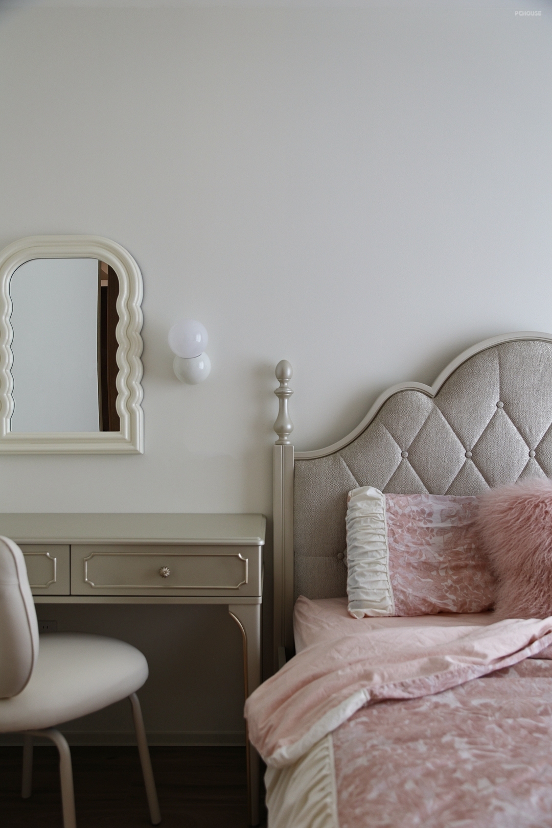 在女儿房的设计中,设计师融入了可爱复古的法式元素,创造了一个温馨柔和的空间,让小朋友也能拥有一个独特而舒适的小天地。复古风格的法式家具,给房间的增添了别样的风情。整体配色以暖色调为主,适合小朋友的成长。