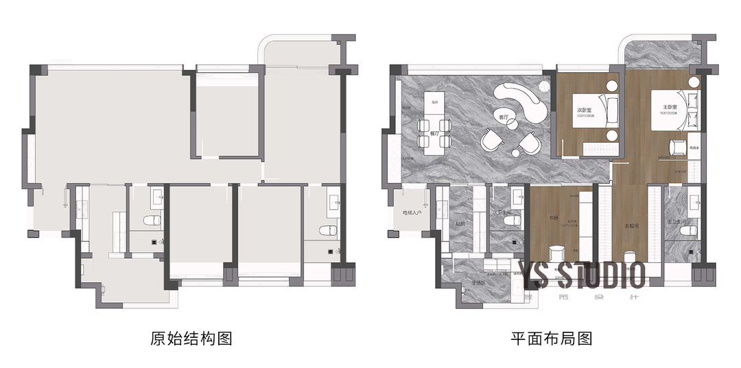 房屋最大的改动在于卧室区域的整合,将一个原有的房间纳入主卧,形成独立衣帽间,满足套房的形式。除此之外,也保留了一间客房备用。剩下的一间卧室则采取了半开放的形态,增加了大空间的通透感也同时保有小空间的灵活度。