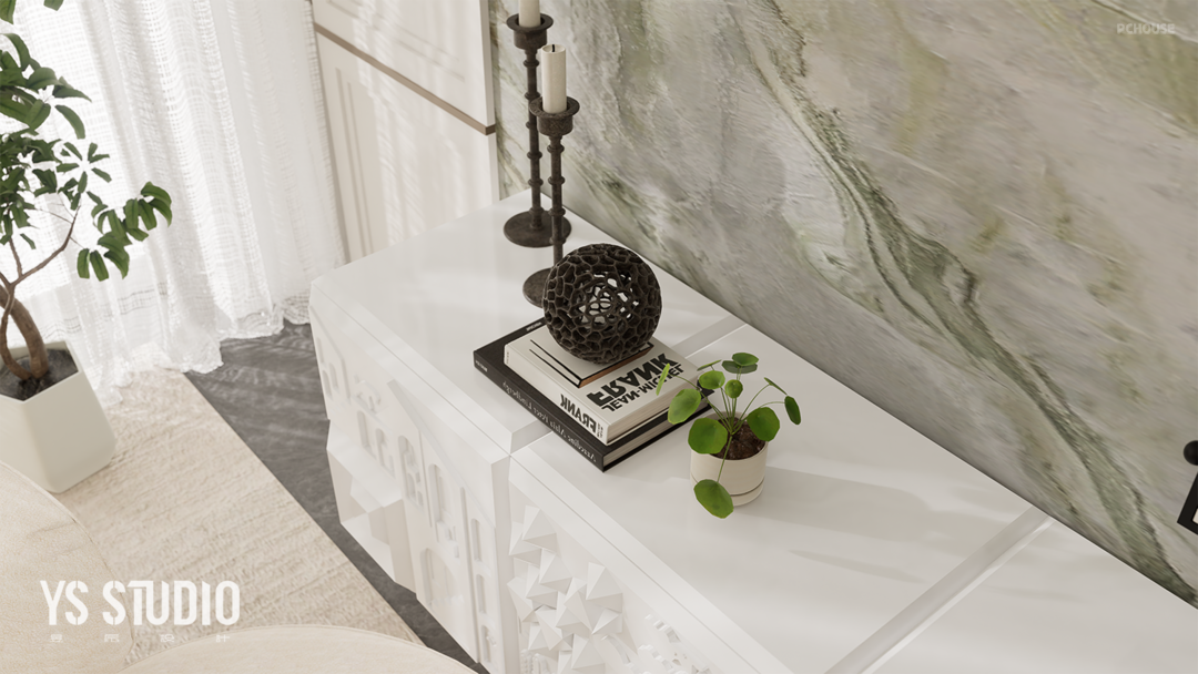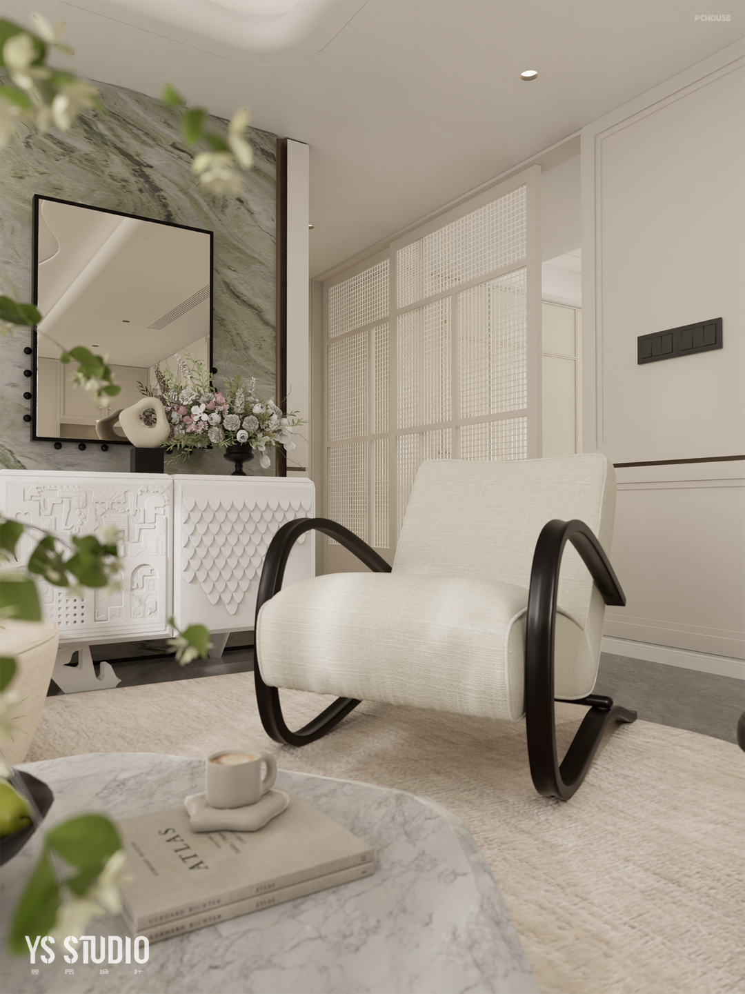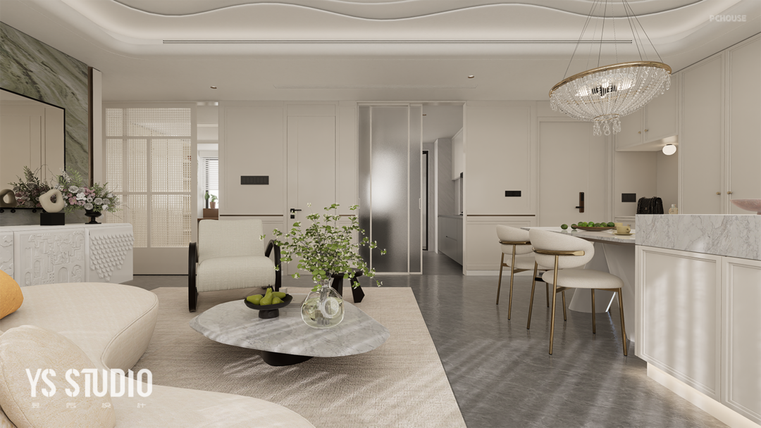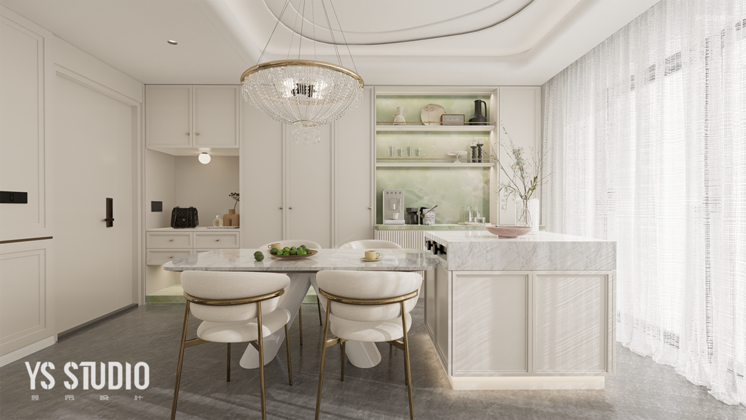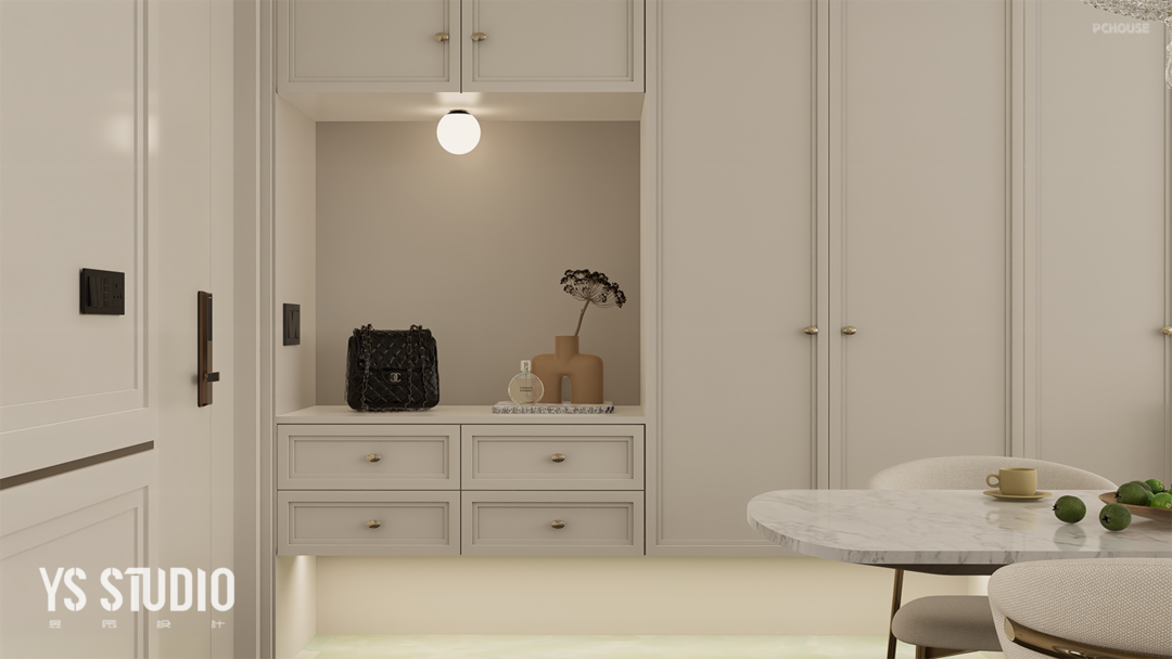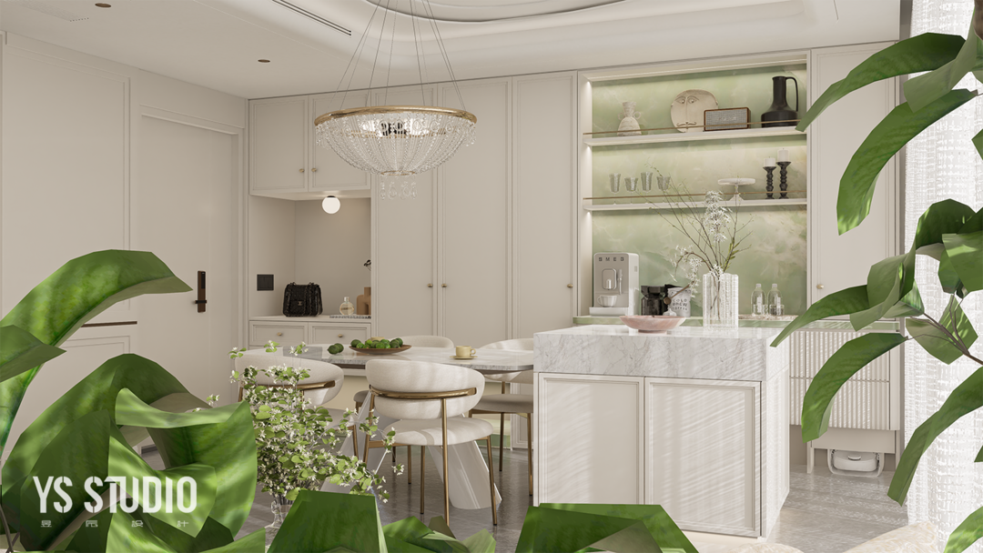 观宸的精装房,本身具有一定艺术表现,再加上地理位置的优势和生活便捷程度,被很多业主当作绝佳的第二居所。本案的两位屋主亦是如此,他们往返重庆、昆明,由此我们展开设计,将这个家定义为休闲、放松的度假酒店一样的存在。放大精装本身之优势,在简约之中重新定义了法式的优雅。大面积的浅色调,贯穿空间的绿色点缀,让生活拥有了自由呼吸的松弛感。