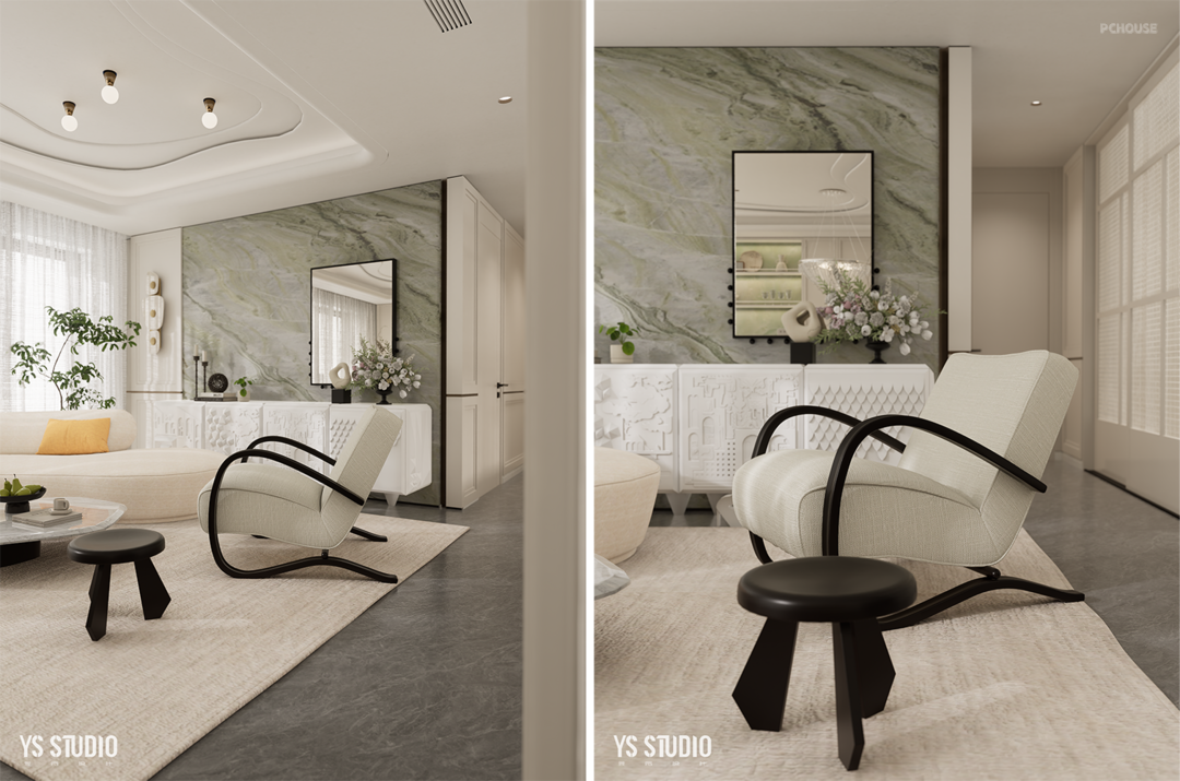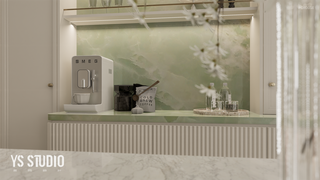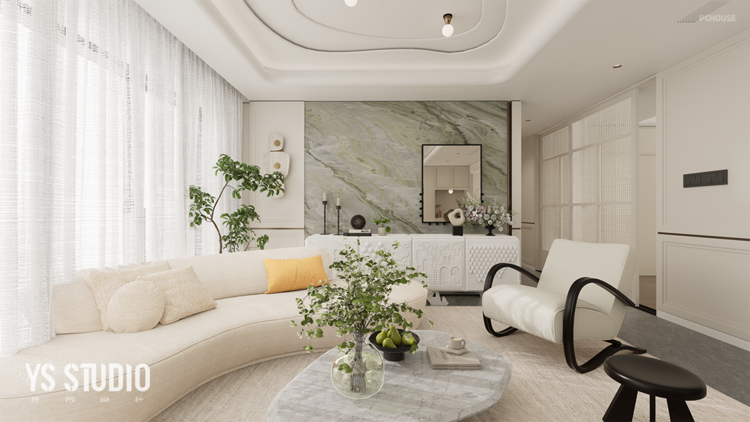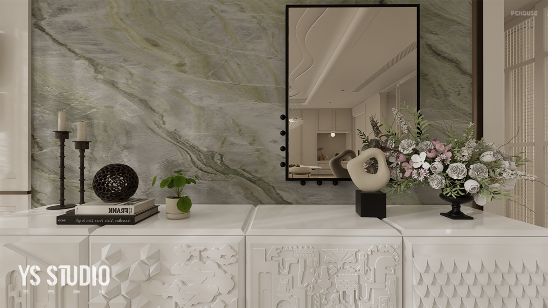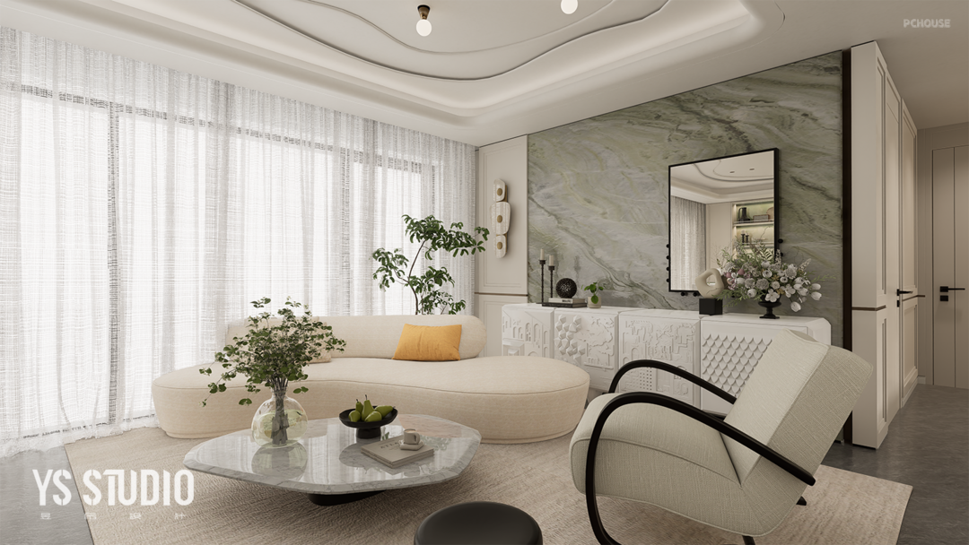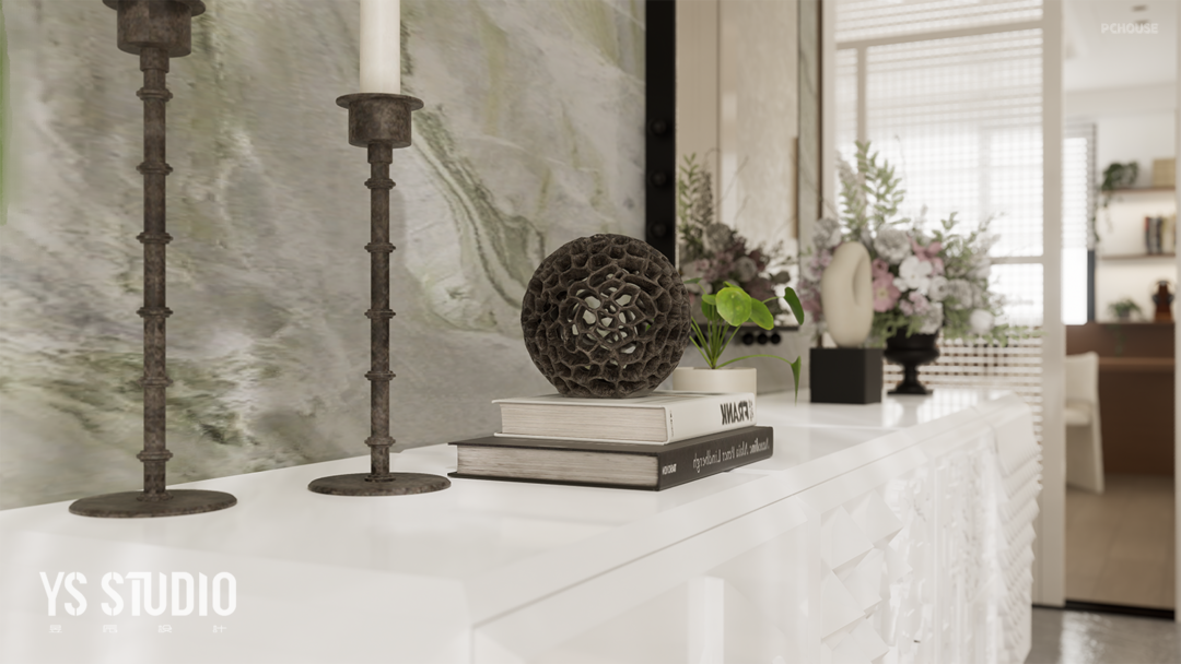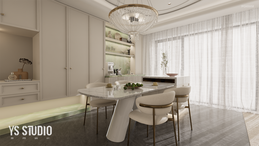 观宸的精装房,本身具有一定艺术表现,再加上地理位置的优势和生活便捷程度,被很多业主当作绝佳的第二居所。本案的两位屋主亦是如此,他们往返重庆、昆明,由此我们展开设计,将这个家定义为休闲、放松的度假酒店一样的存在。放大精装本身之优势,在简约之中重新定义了法式的优雅。大面积的浅色调,贯穿空间的绿色点缀,让生活拥有了自由呼吸的松弛感。