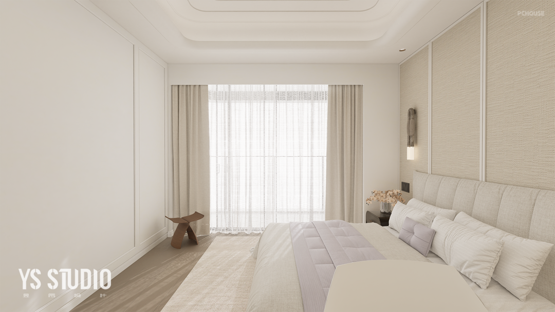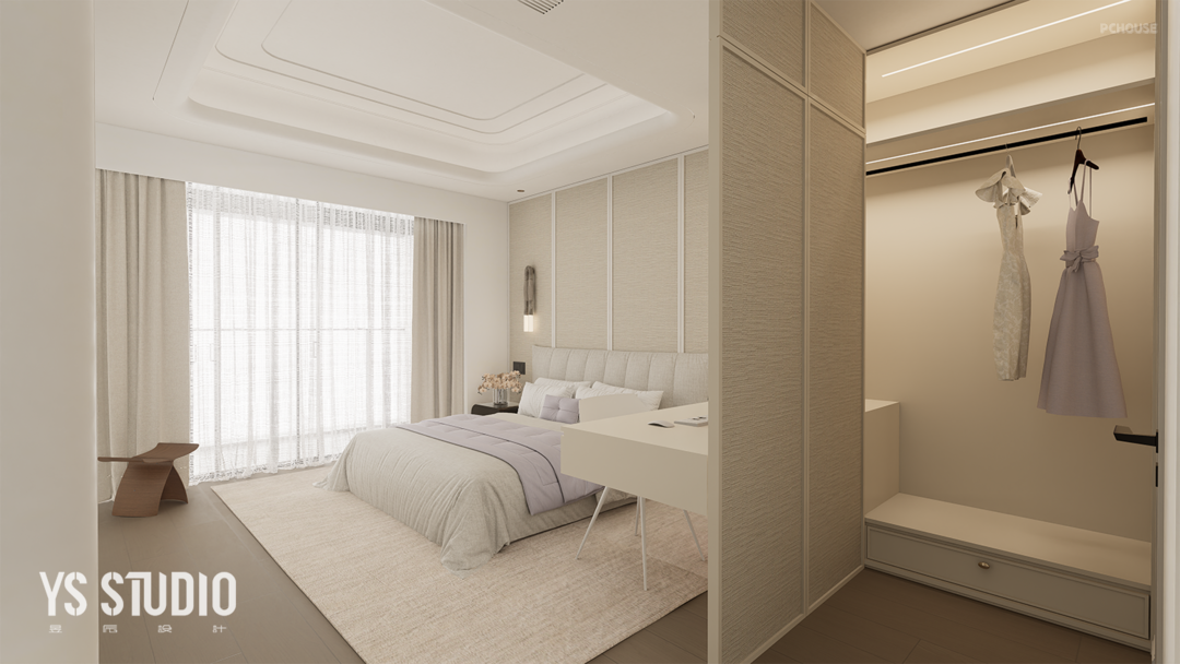 干净的主卧套房,实实在在的划分了不同的功能区,完美平衡了实用性和美学。