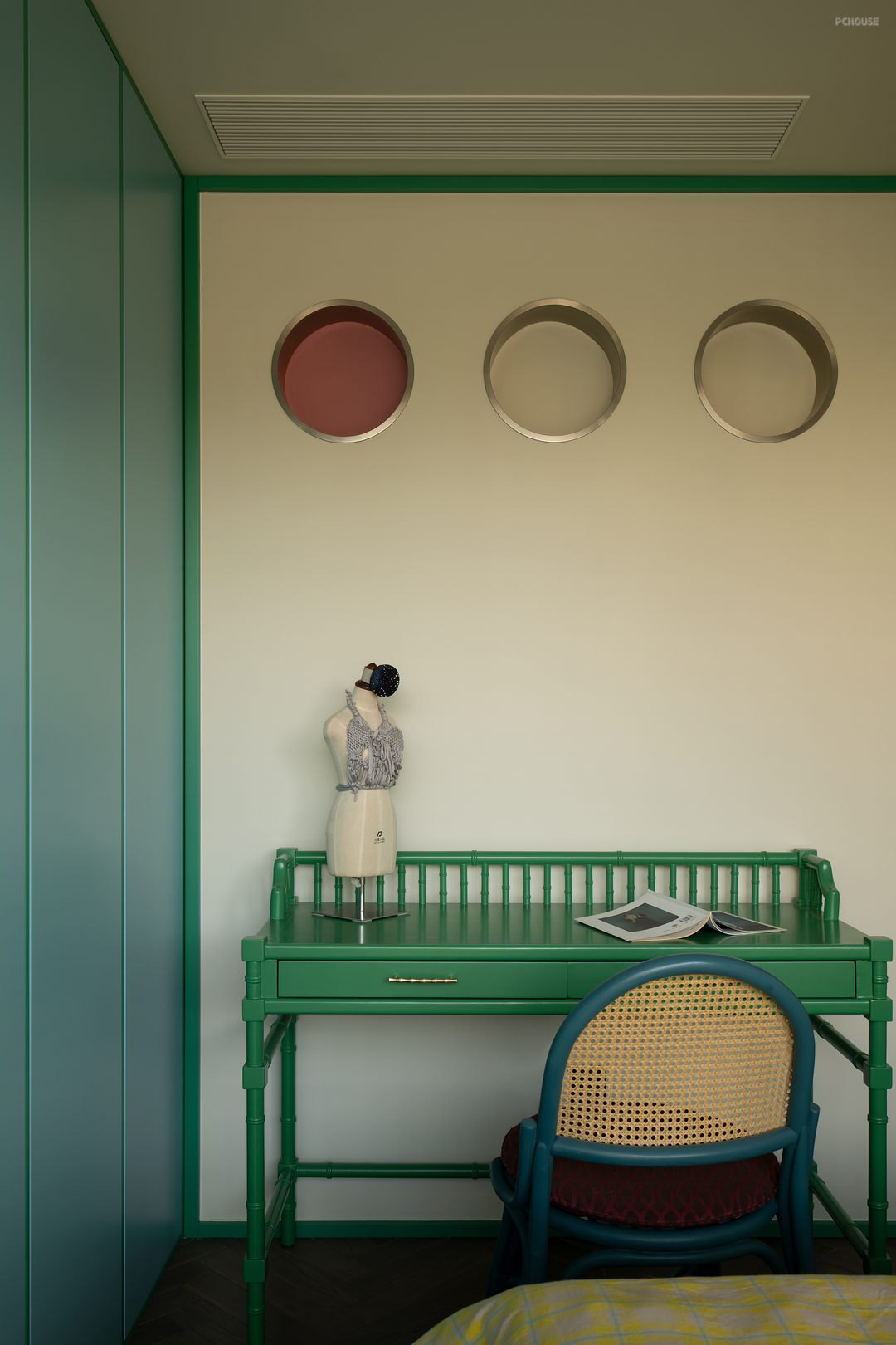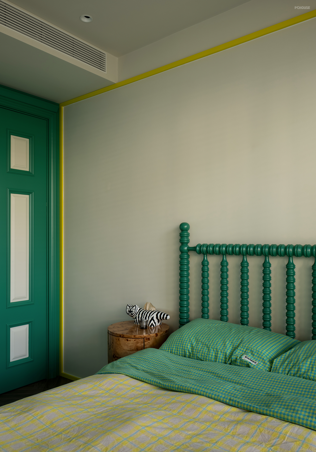 小空间用鲜明的绿与黄碰撞出“多巴胺”的愉悦氛围。