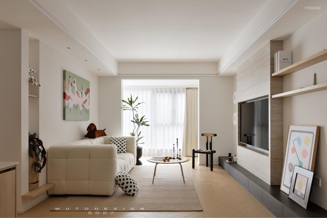 无主灯的设计让光线温柔地洒落,简洁优雅的线条勾勒出空间的轮廓,将每个角落串联成和谐的整体。