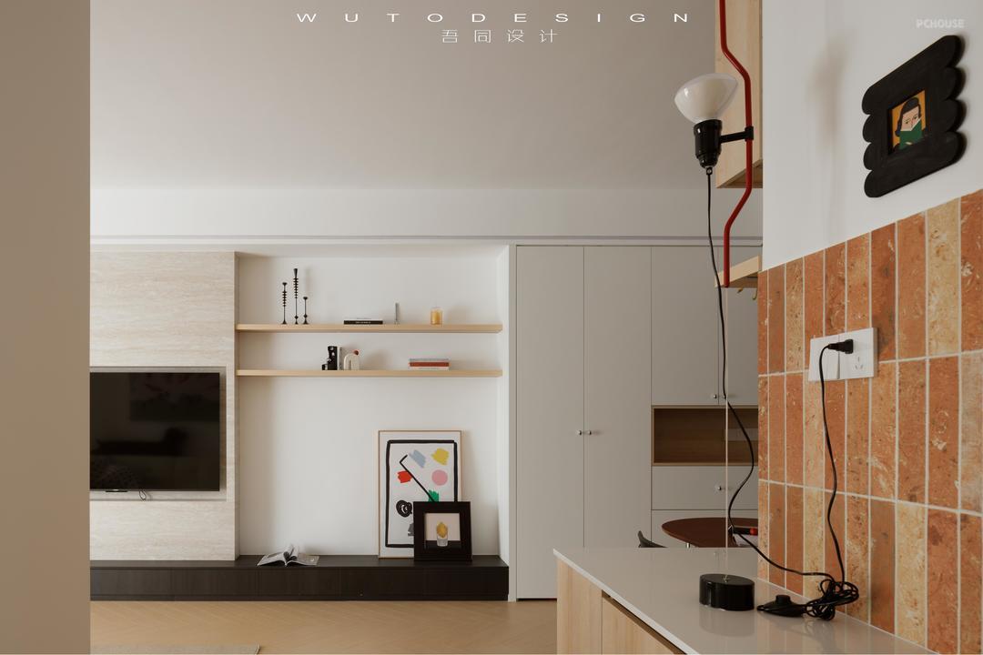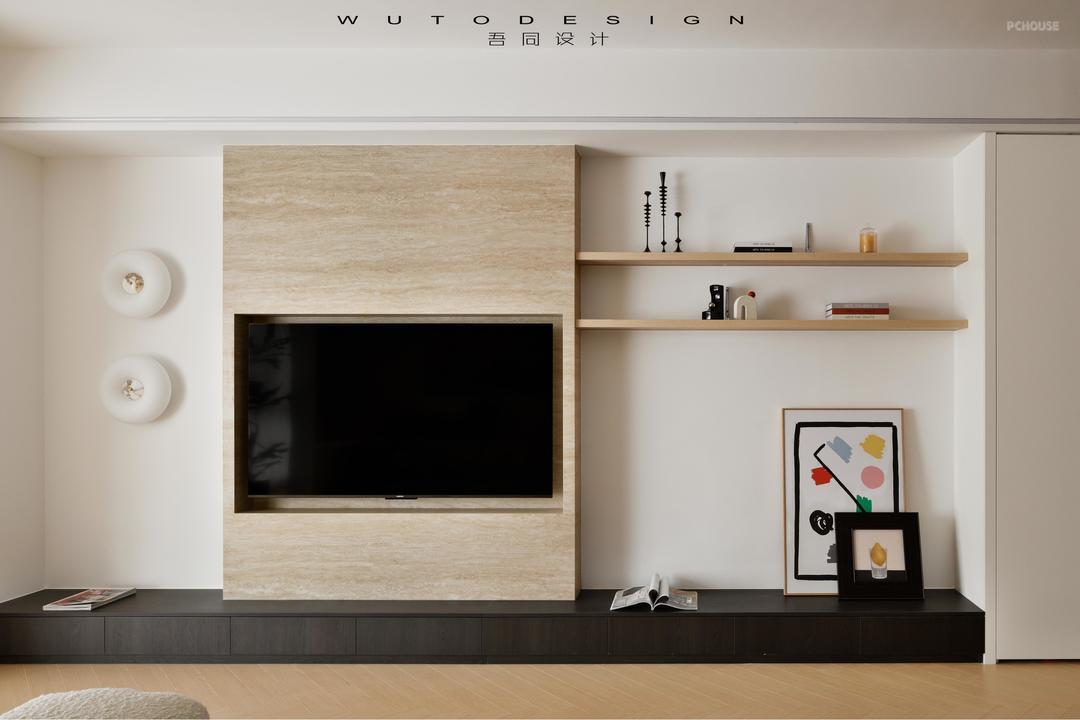 电视墙被分割为三块区域,既满足了展示的仪式感,又兼顾了收纳的实用性。