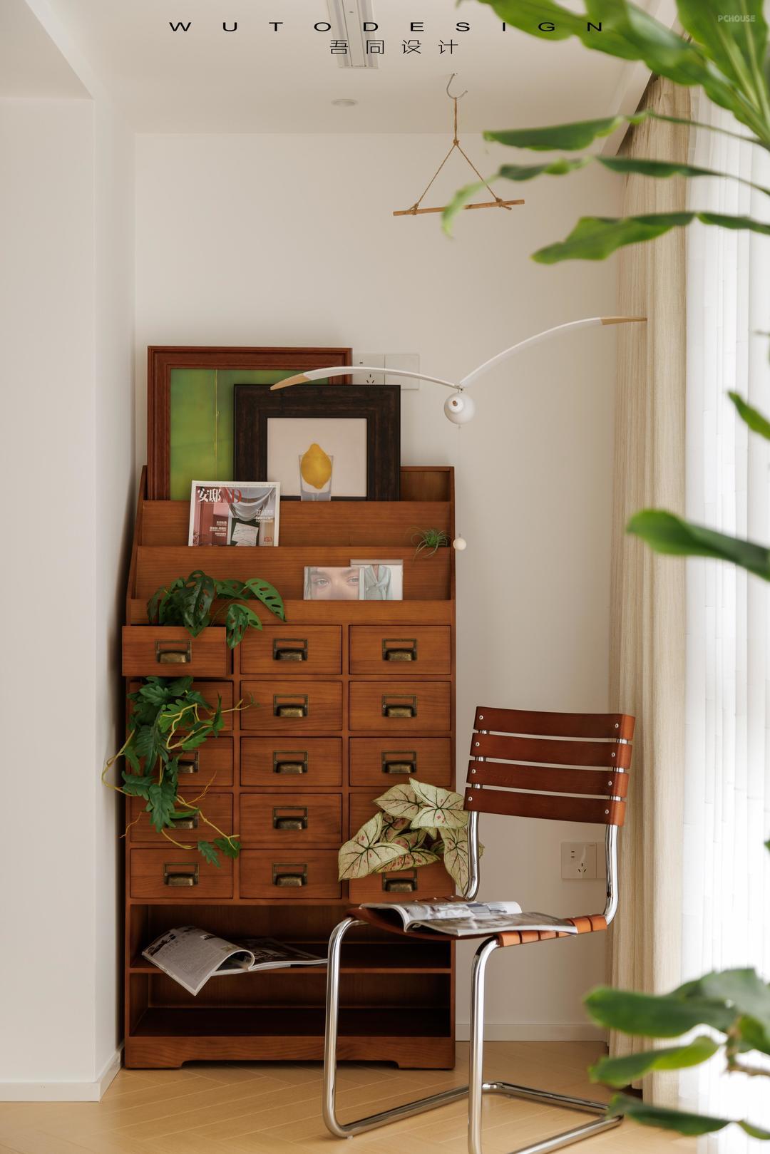 餐厅的承重柱并非简单的包裹,而是和餐边柜巧妙融为一体,仿佛自然生长出的延伸台面。
