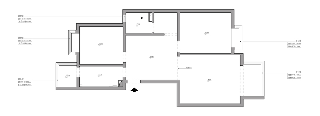 1.原始户型每个空间都很方正,主要针对内部结构的规划。