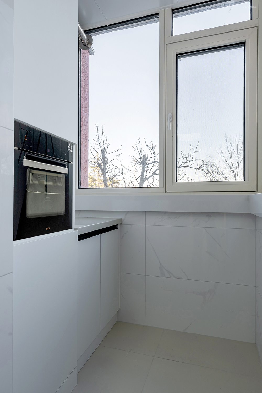 3.把厨房的阳台门去掉,与厨房连为一体,增加出厨房各种小电器的使用区域。