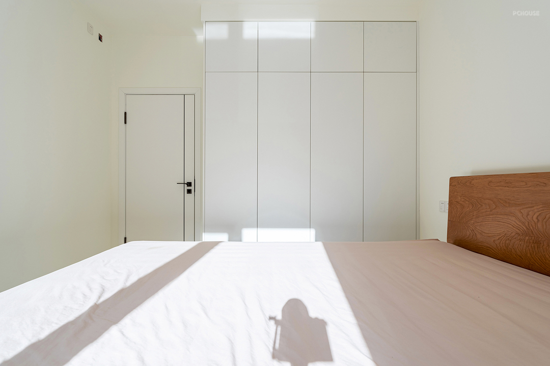 主卧室整体使用温柔素雅的色调,搭配温馨自然感的原木家具,营造出一种舒适惬意的氛围感~