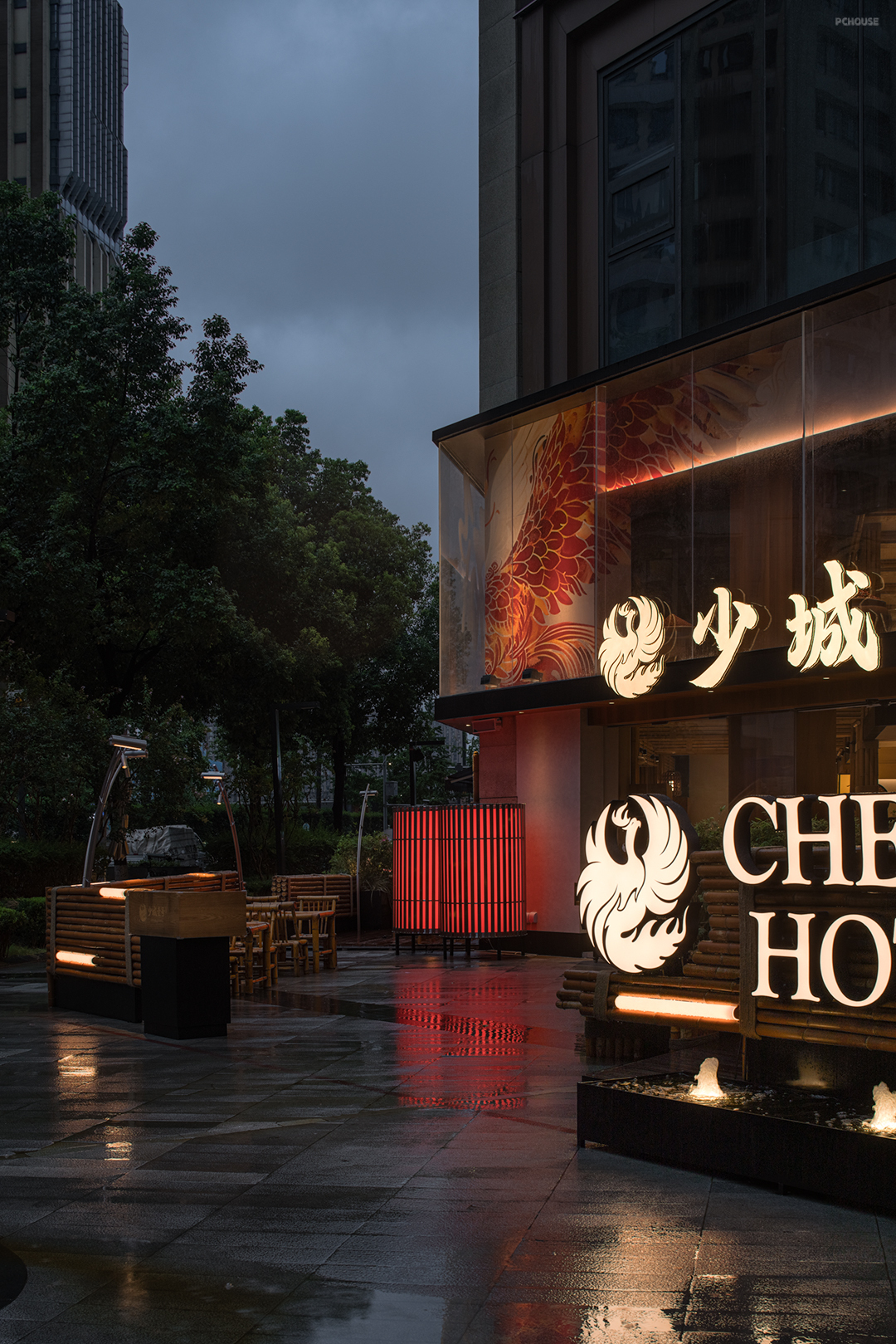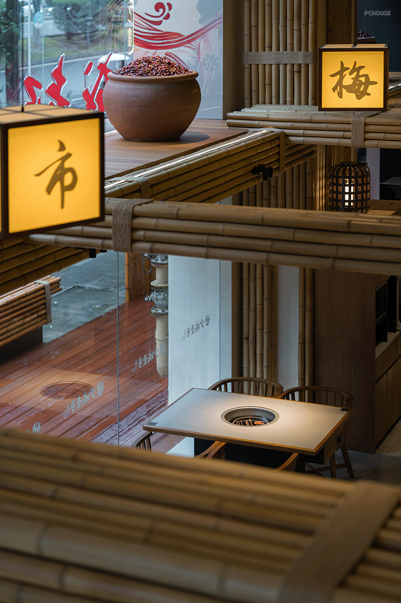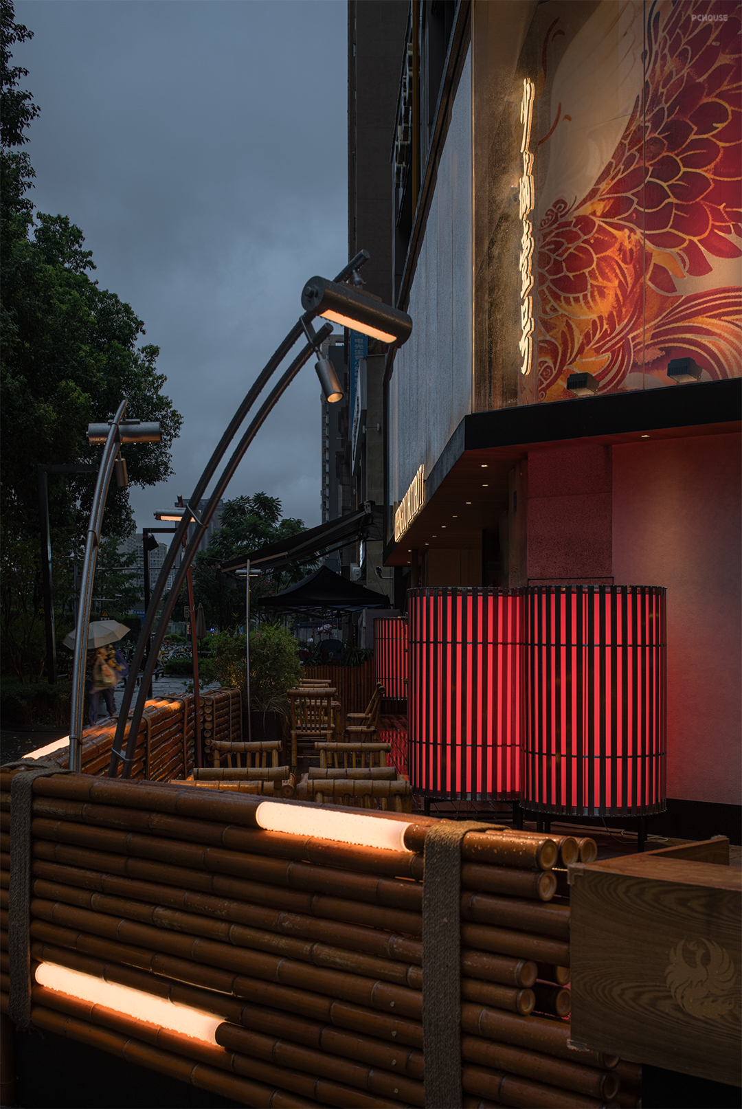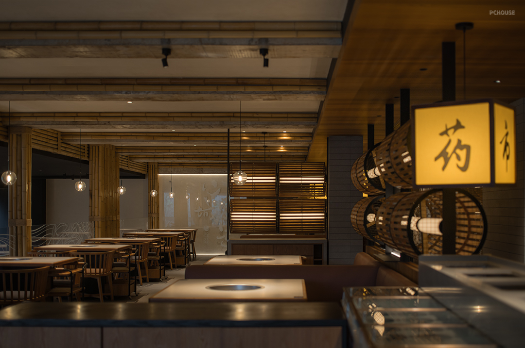 一部分,鸟笼灯元素贯穿室内外空间,传统的元素、创新