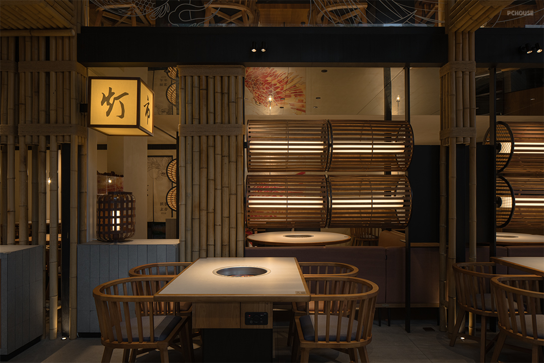 的设计手法,让鸟笼灯隔断既具现代感,又不失传统文化