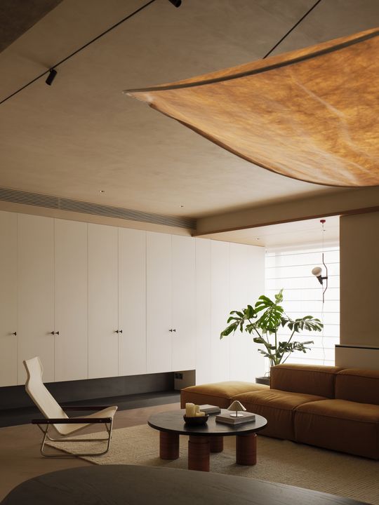 主卧也是一简到底,无主灯,无靠背床,无多余的收纳柜。摒弃一切无用,让生活回归到简单与本真,轻松开阔的空间,反而让居住环境变得更加精致,生活效率更高,内心也更加轻盈自在。
