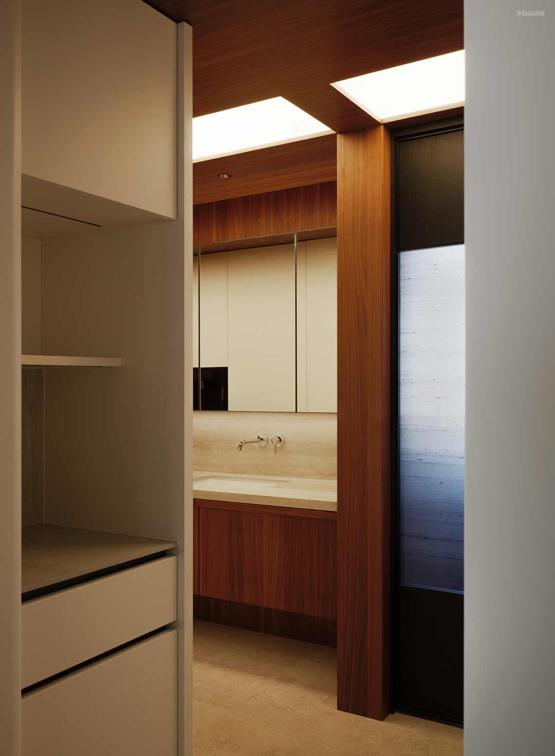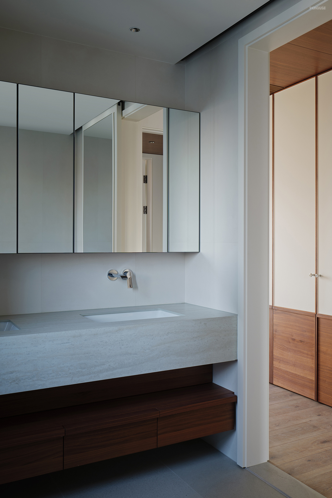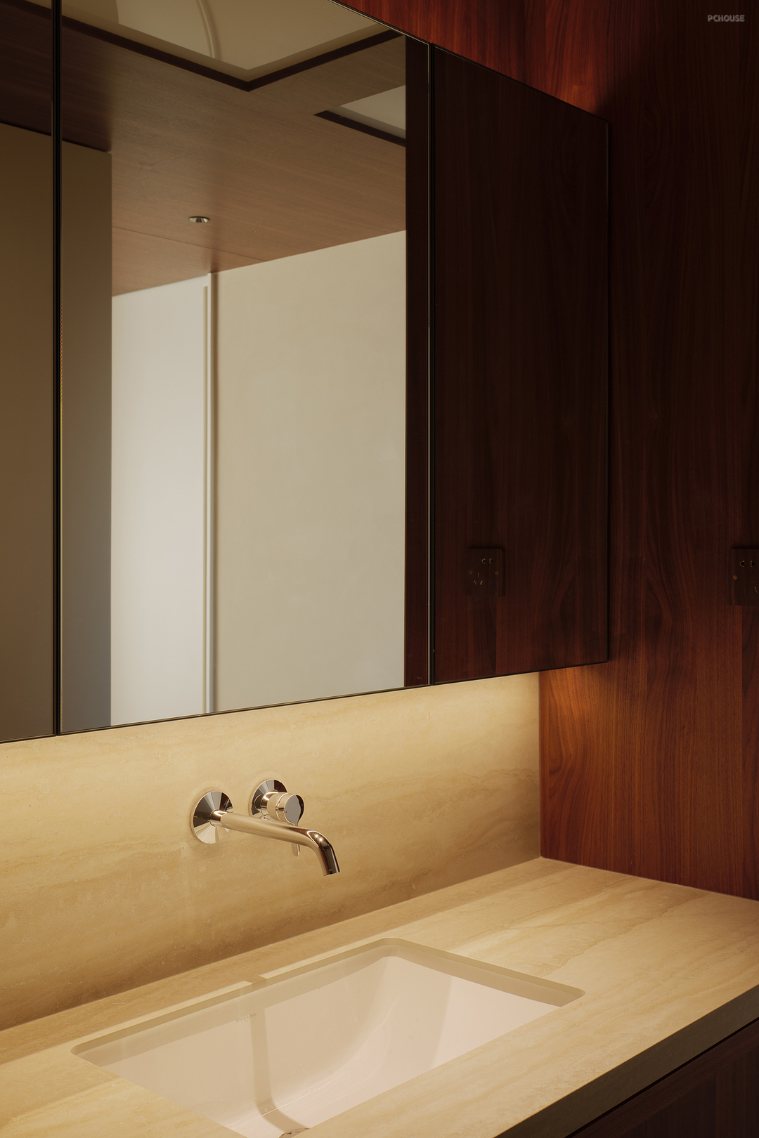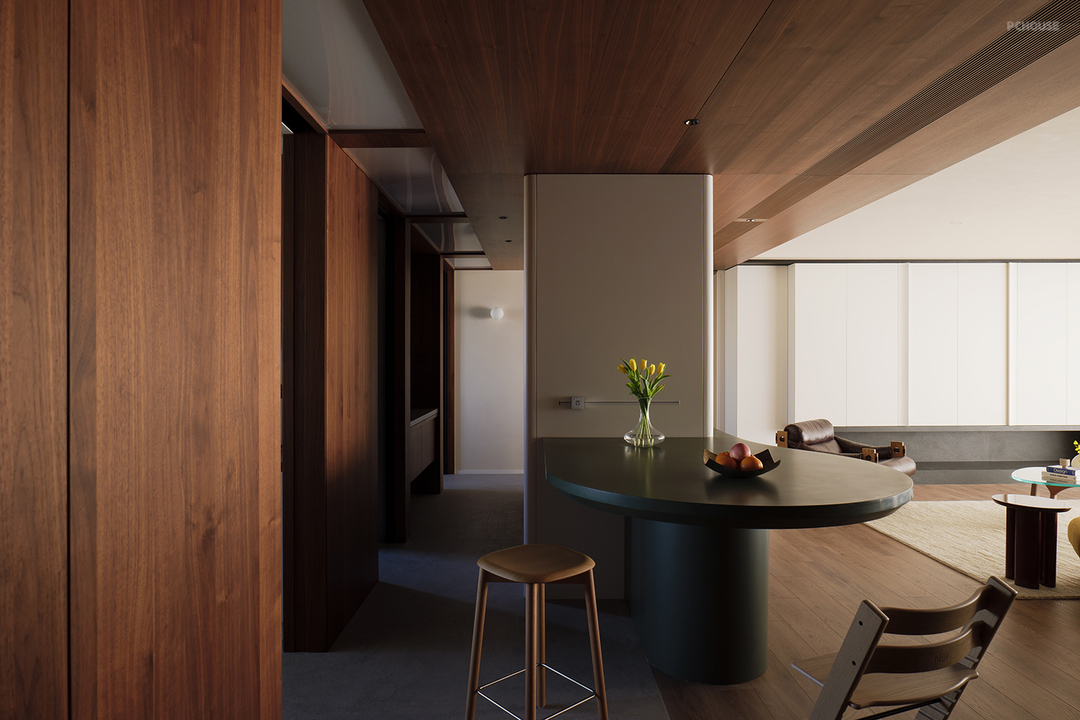 通过对材质的不同处理融合了现代和自然元素,使用胡桃木、砂岩砖和质感涂料等材料来强调空间的基调,自然光软化空间的同时采用了温暖的纺织品和颜色调和,这种材料与比例的微妙平衡在室内随处可见。