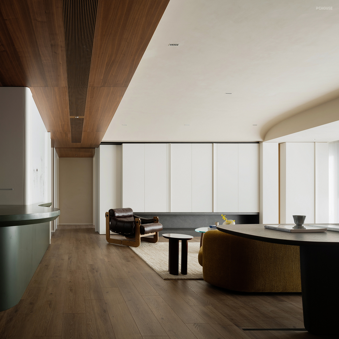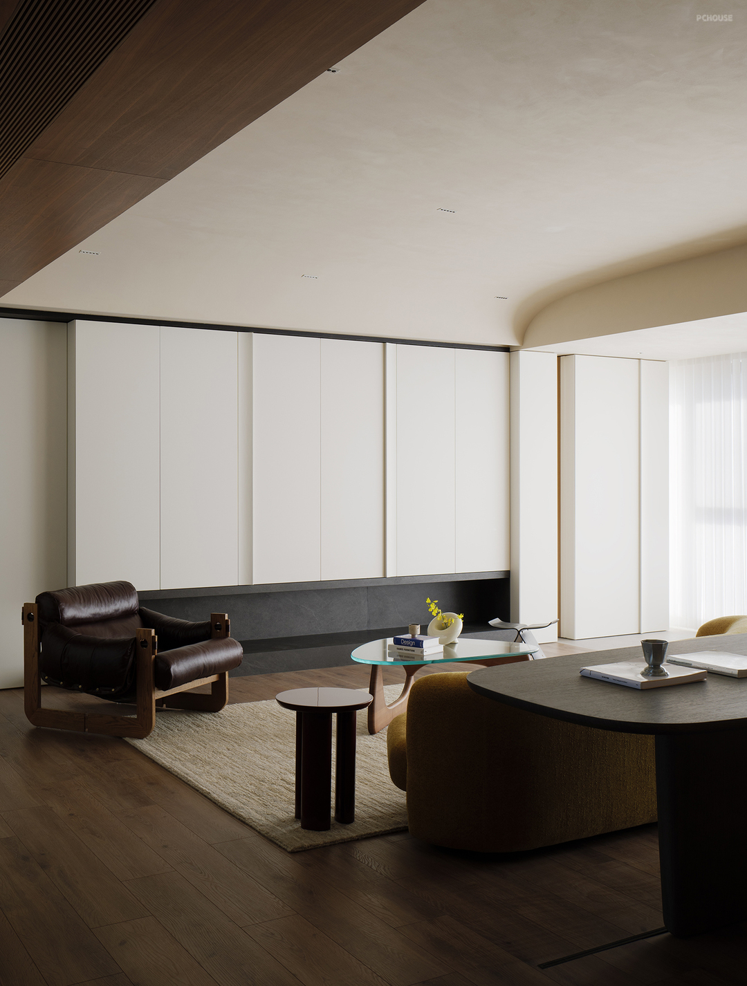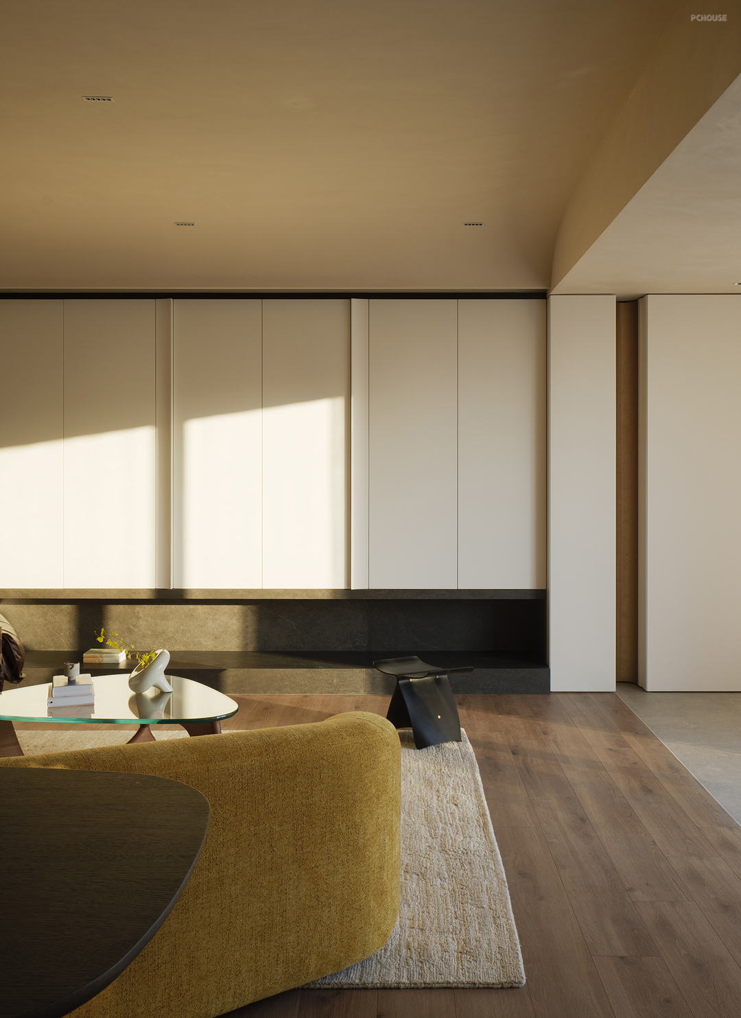天然材料的肌理,带着大地的呼吸,细腻而深沉;中性色调的晕染,将晨曦的微光轻洒,柔和而包容。通过材质去诉说着一种超越时间的宁静,将喧嚣隔绝于外。