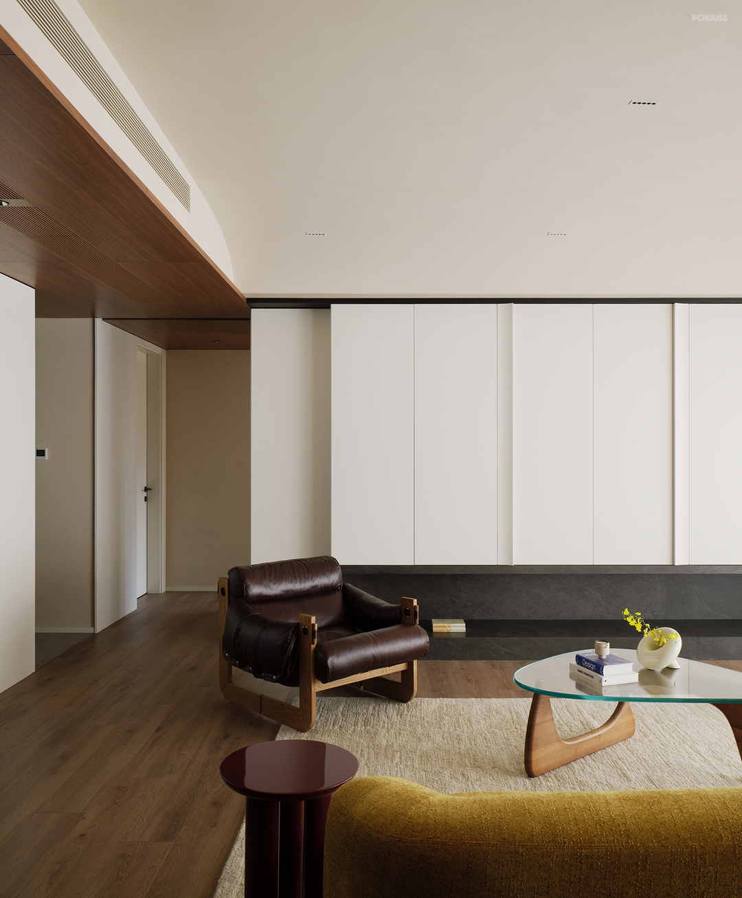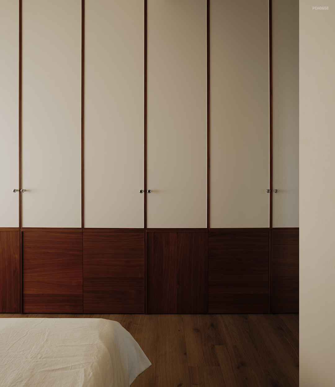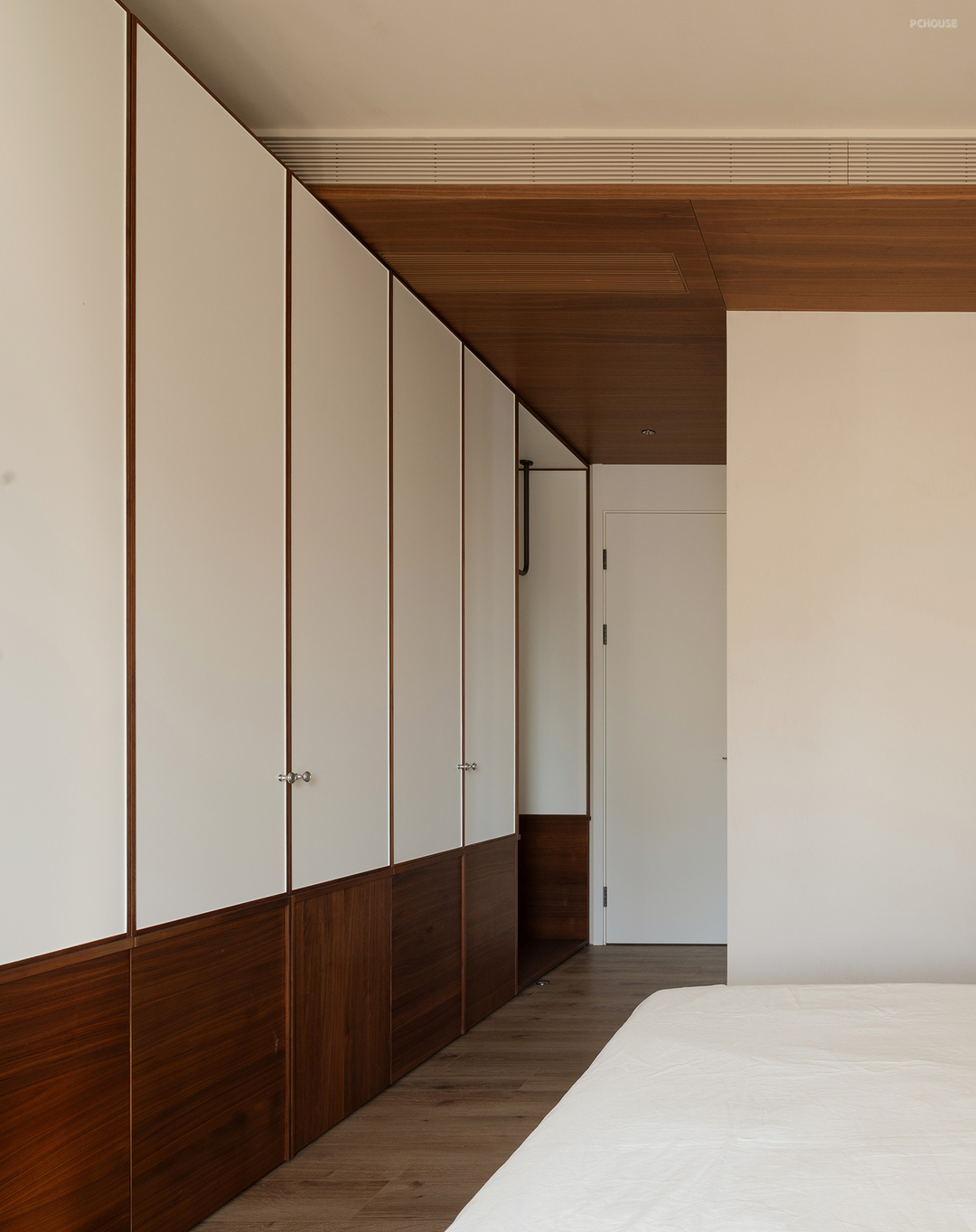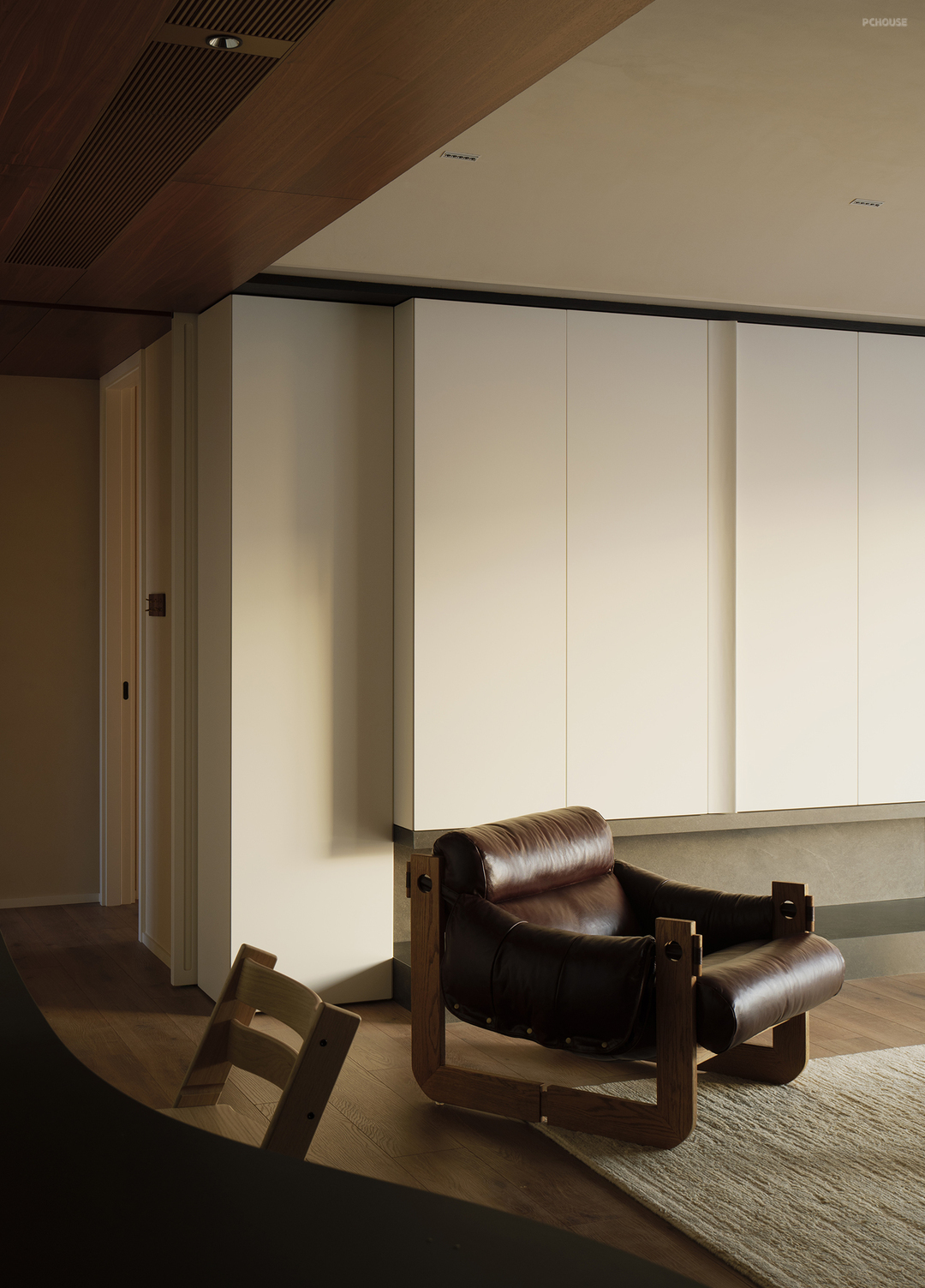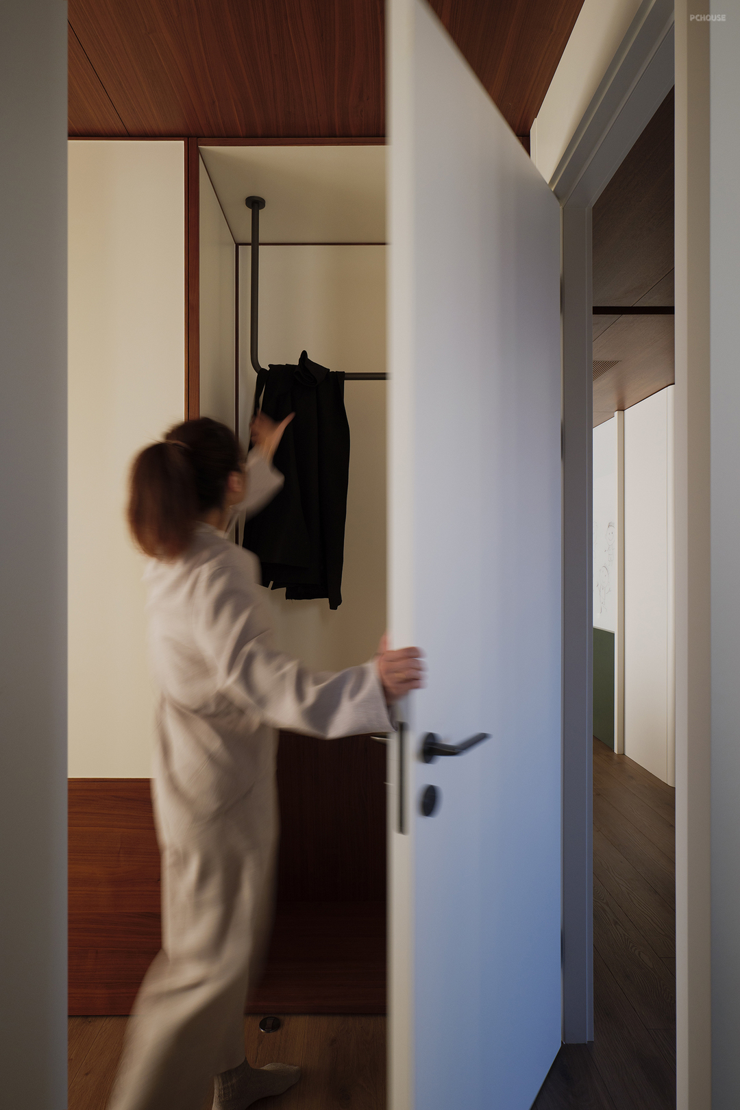 全高储物柜并非生硬的阻隔,转而以开放和闭合创造出若即若离的“楚河汉界”。