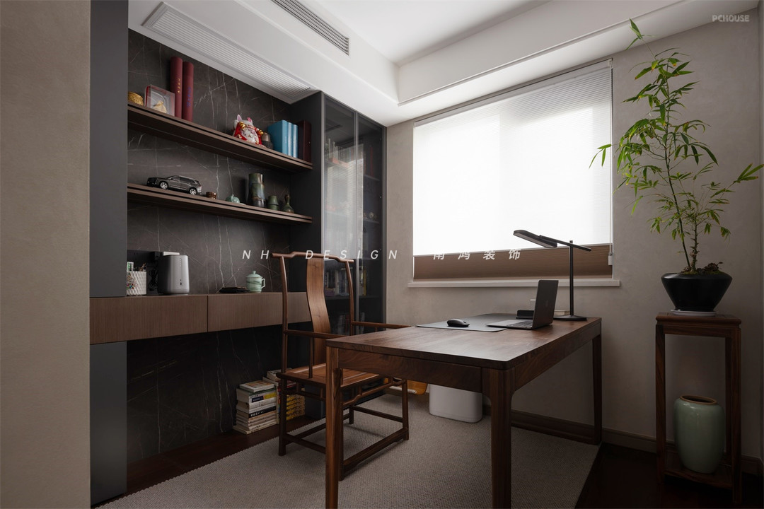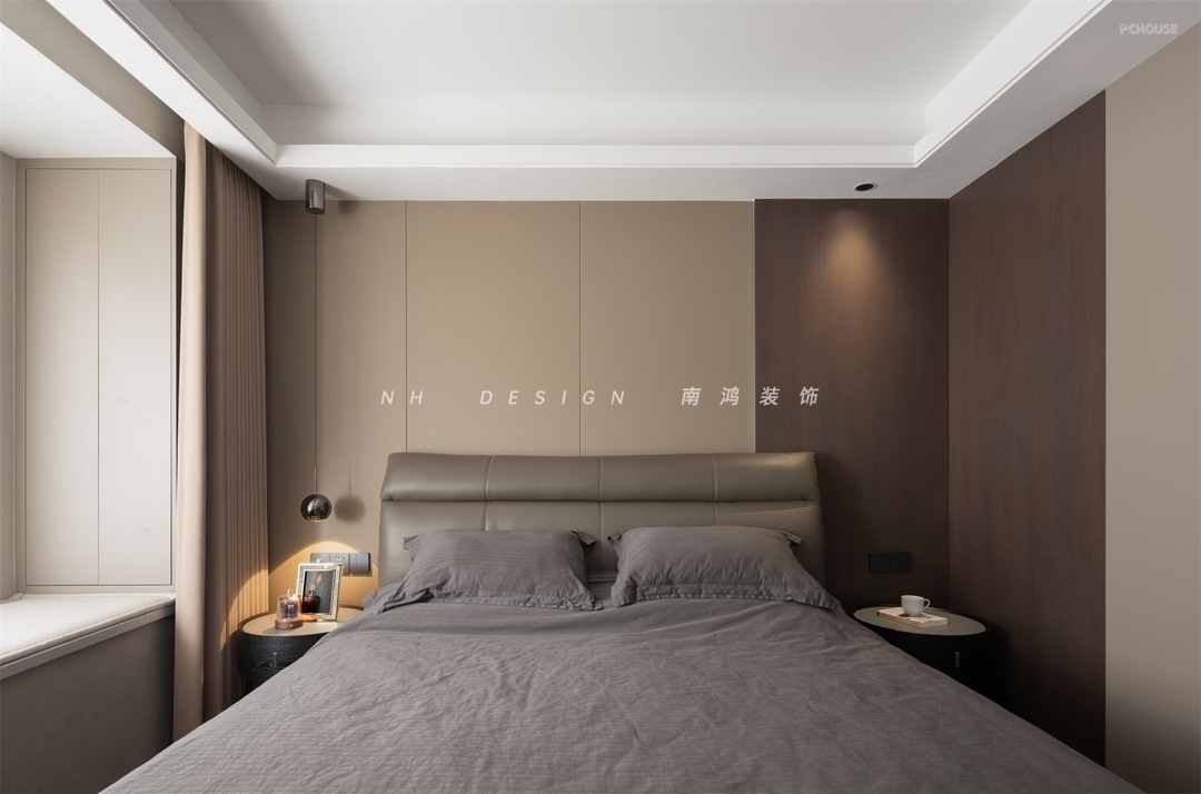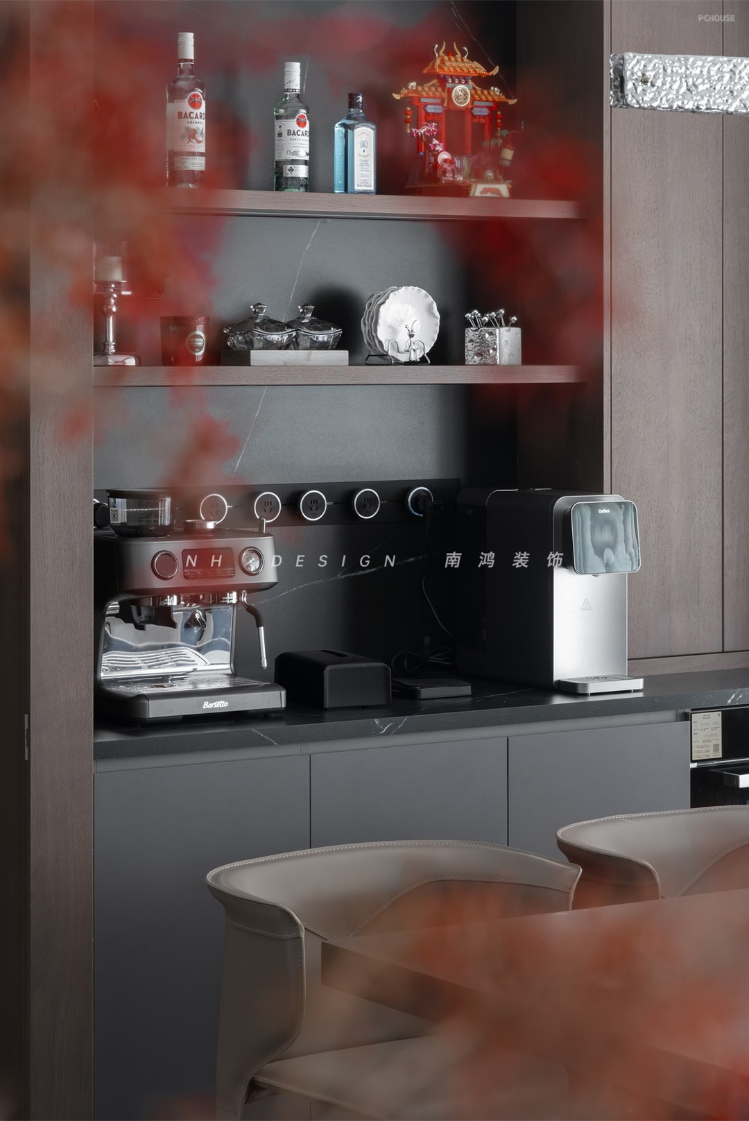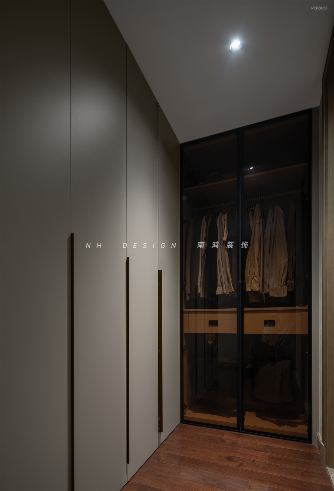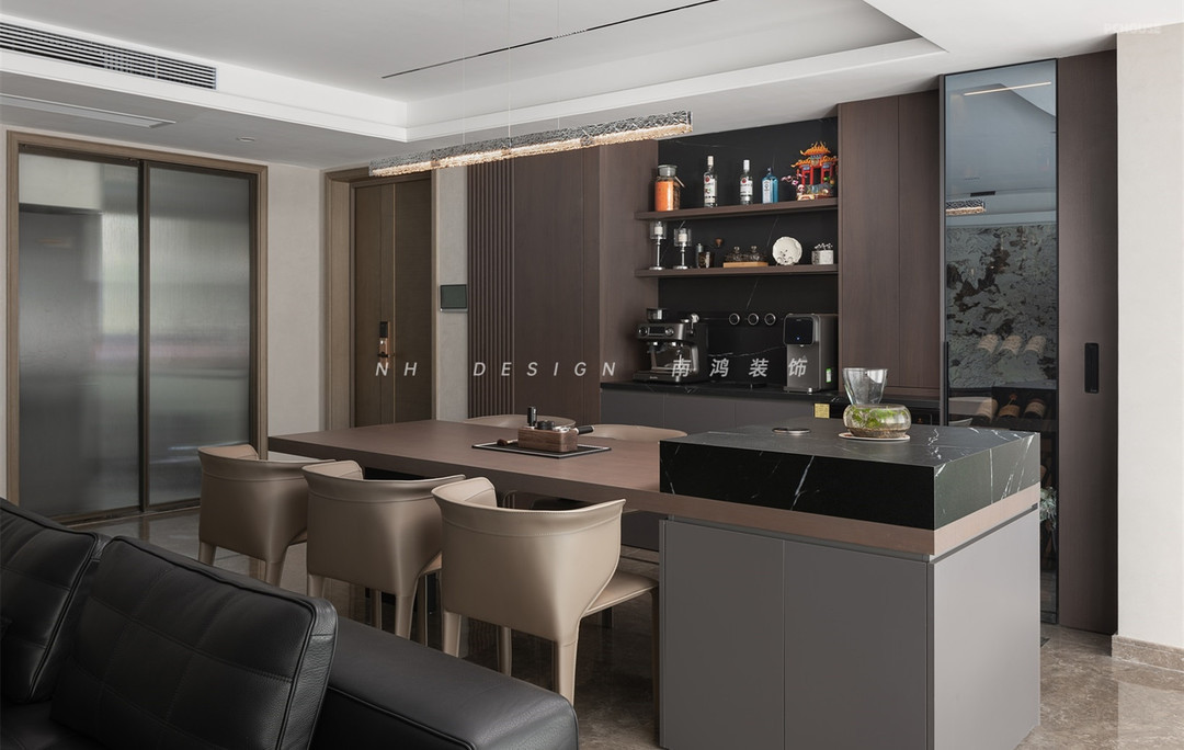 前言: 本案为意式风格的精装房改造,主以简约的设计笔法,融洽都市商务感与细腻生活气息,柔和的中性配色酝酿出安稳宁静的居室氛围。大面积的木纹与石材搭配,整体偏深色的质感,加上利落的线条、有序的体块以及通透性材质的穿插,使得空间调性平衡而和谐,充分展现了意式轻奢的风格美学。