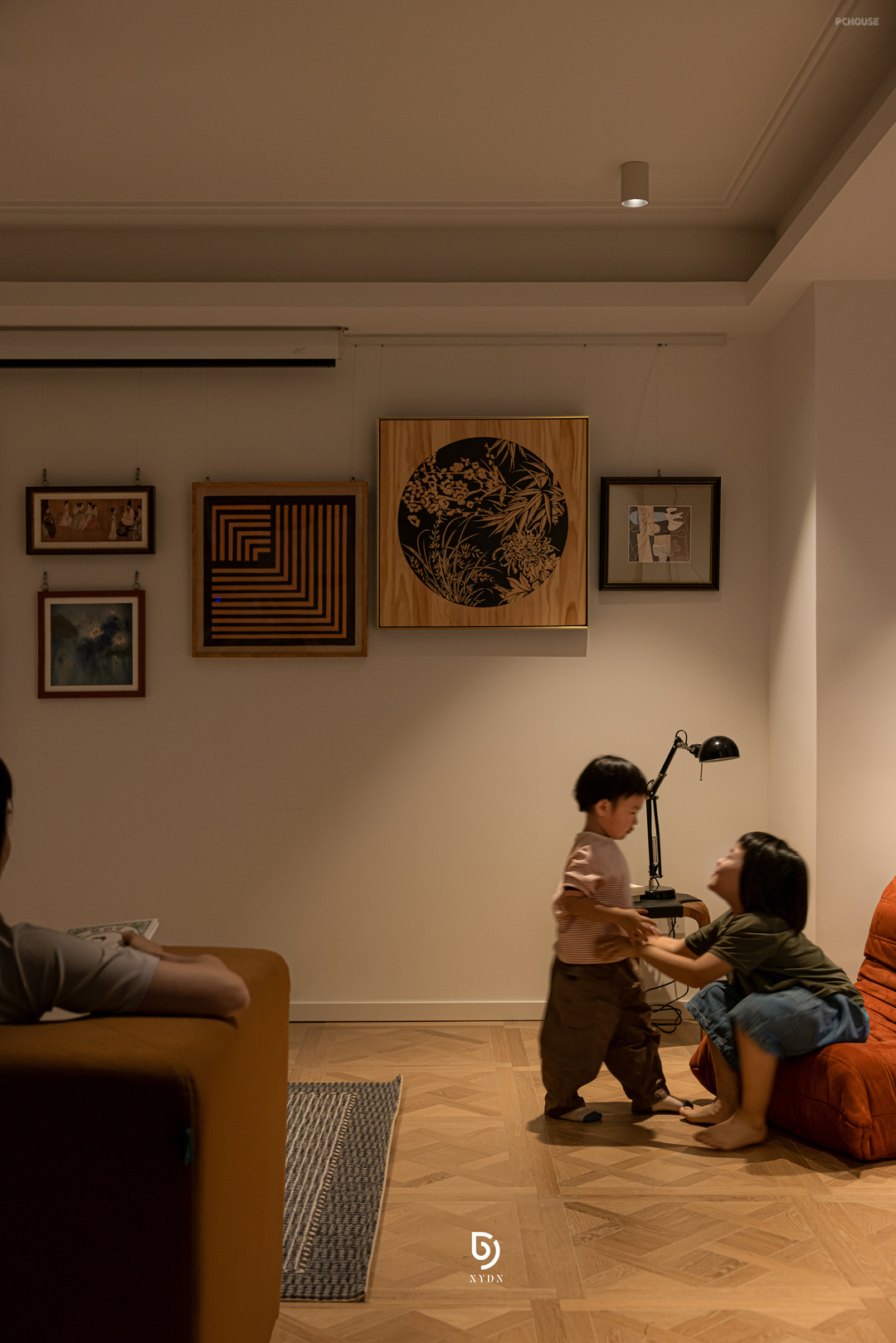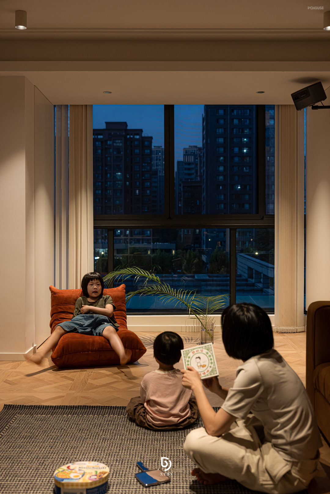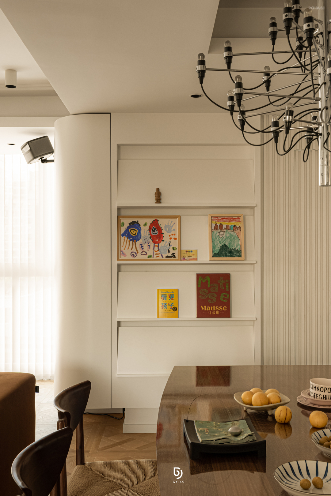 业主“身兼数职”不仅是服装工作室主理人,同时也是一家绘本馆的主理人。“不给自己设限"的生活理念也延续到了对孩子的教育当中。她希望自己的家也可以充满乐趣,培养孩子们对生活的热爱,激发探索求知欲。