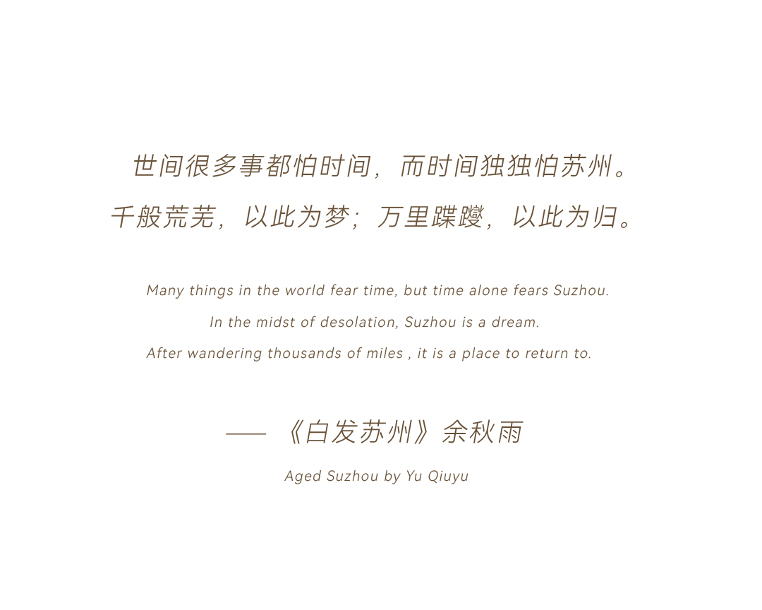 千载以往,谁不忆江南?相城的匠艺十绝,苏州的风韵不绝与悦榕庄的浪漫低奢被YANG精准捕捉,巧妙织译,营造出隐逸而生机盎然的避世胜境,让横亘千年的江南之梦继续延绵!