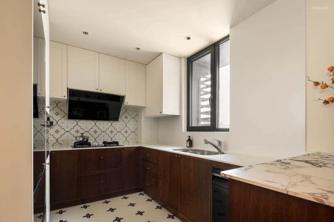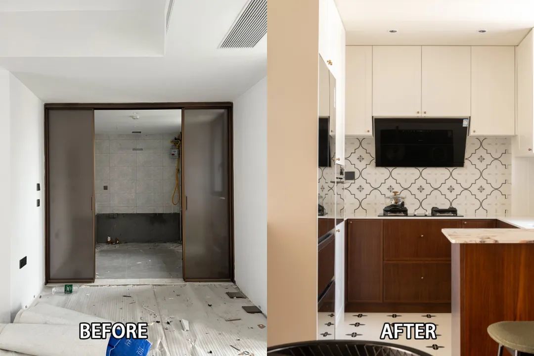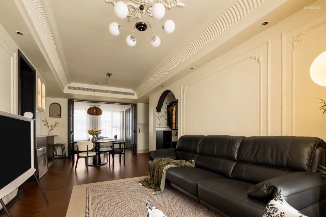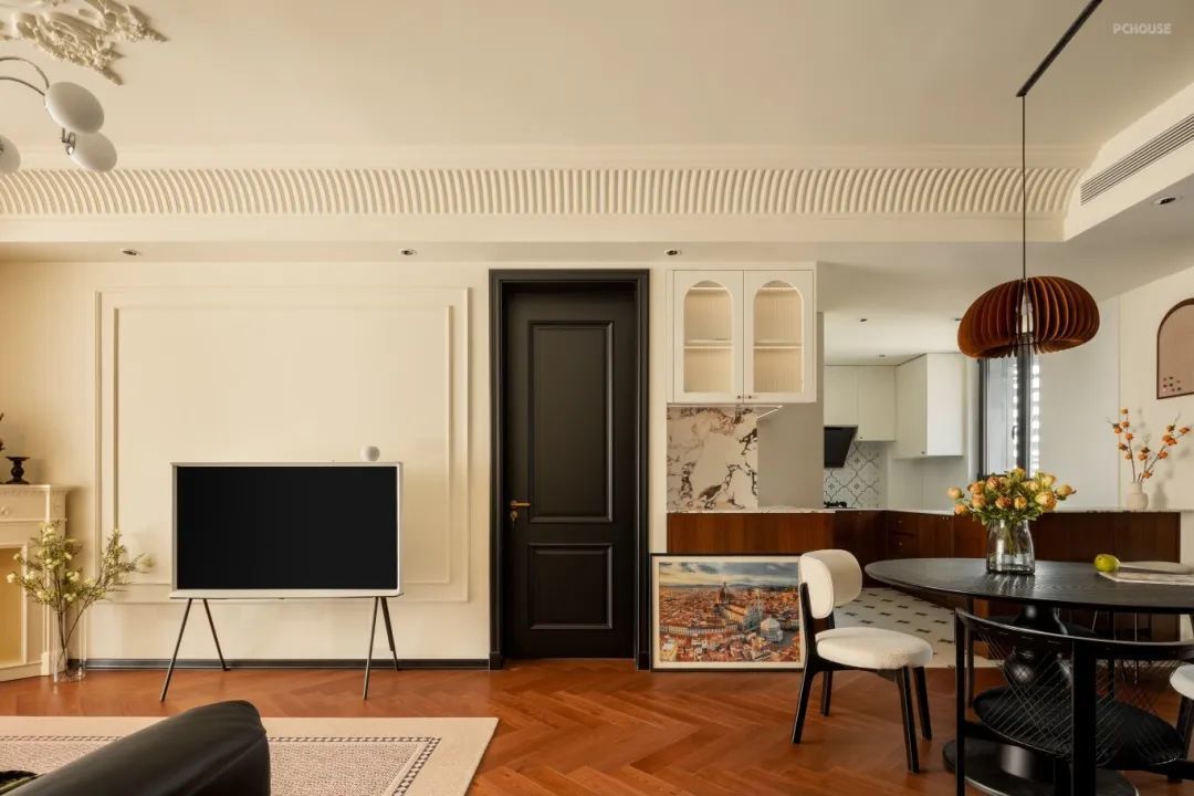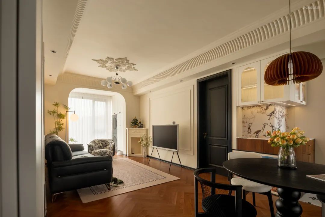 前言: 这是一个100㎡的精装房改造项目,位于上海浦东。在综合屋主的需求之后,设计师通过改造,优化了空间利用、动线流畅度与收纳功能,更赋予居住空间全新生命。软装搭配以经典实木材质与浓郁的法式元素,渲染出强烈的电影氛围感。美拉德色调的运用层次分明,为空间带来了一场无与伦比的视觉盛宴。