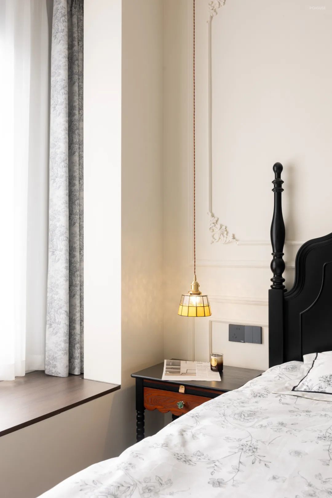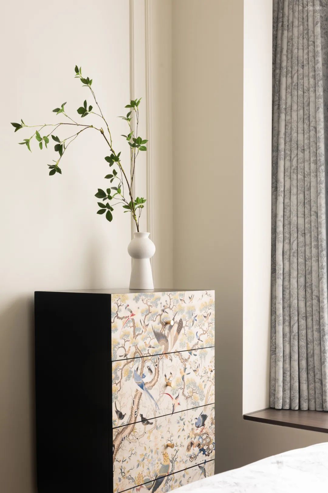 法式复古彩绘床尾柜,摆放绿植,承载对生活的热爱与向往。