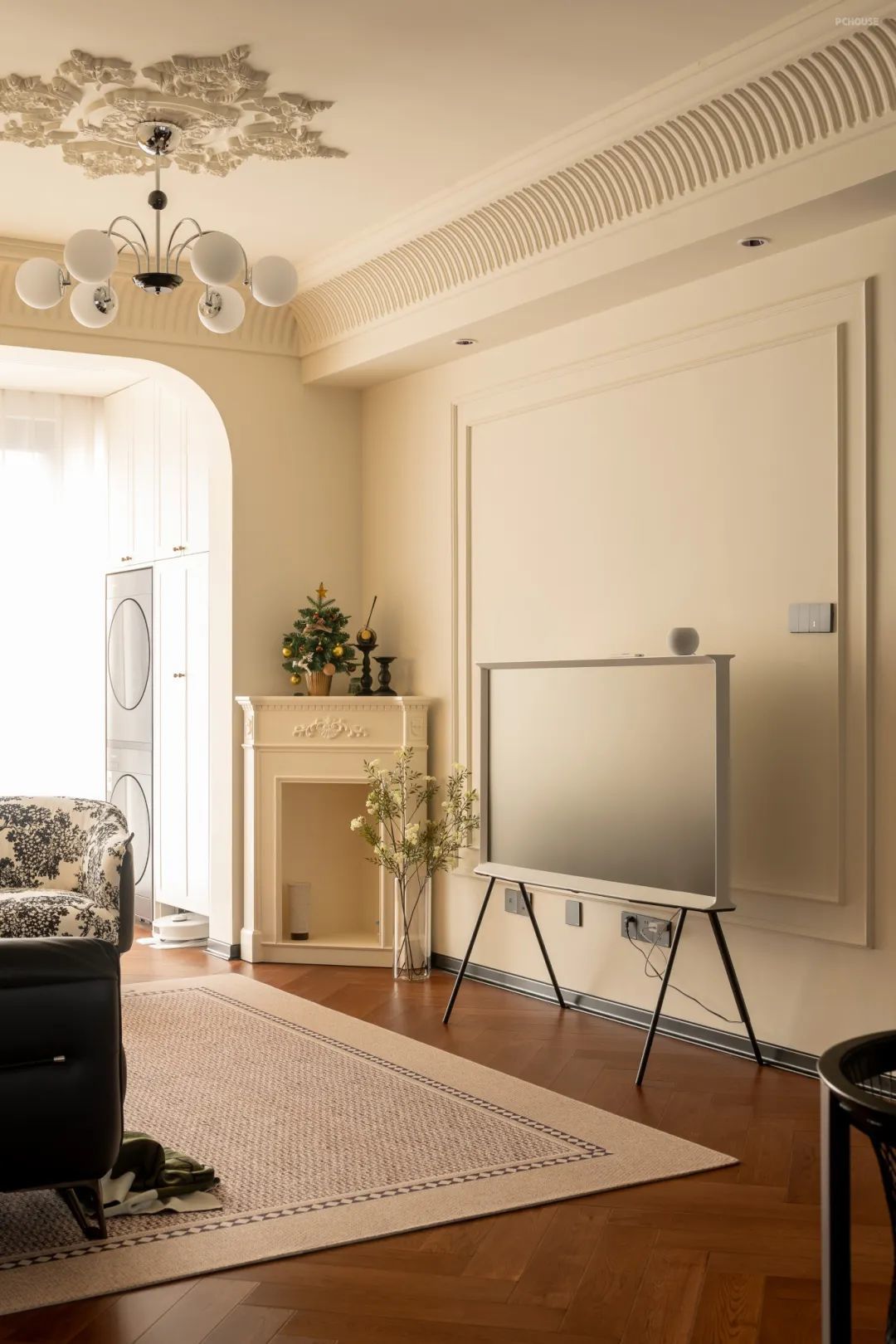 法式石膏线搭配经典壁炉设计,营造出一种远离尘嚣的度假氛围