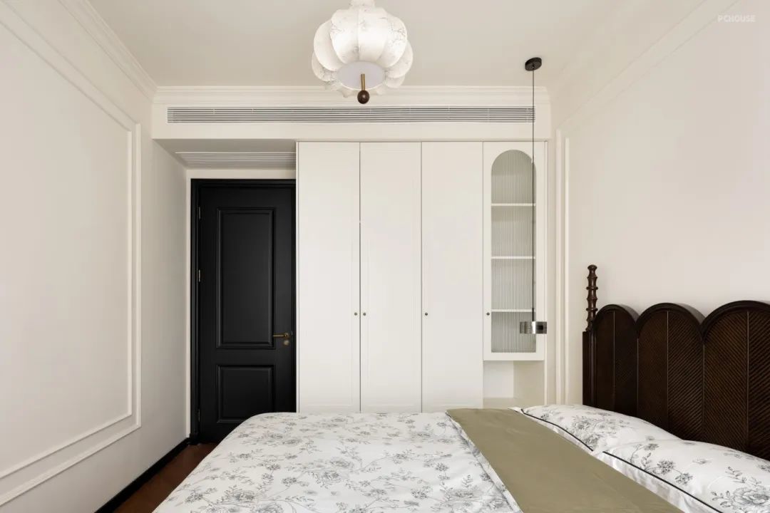 深色的柜子不仅能储物,还暗藏了墨菲床,满足三房需求。