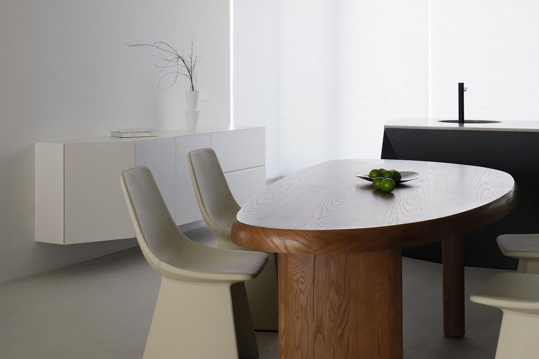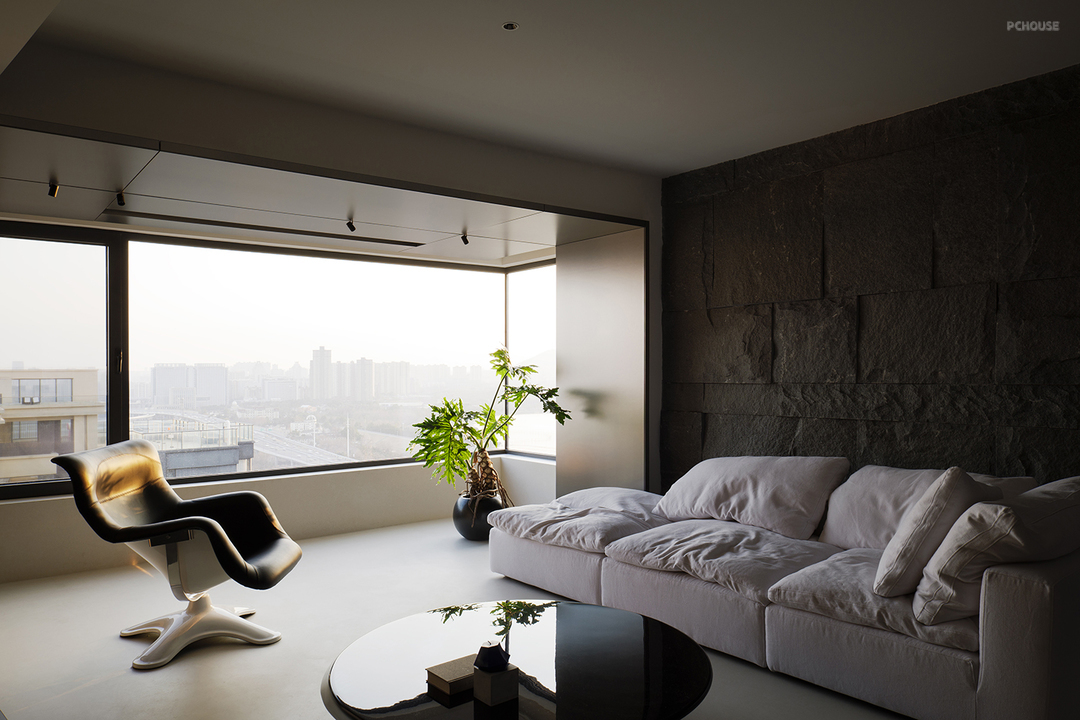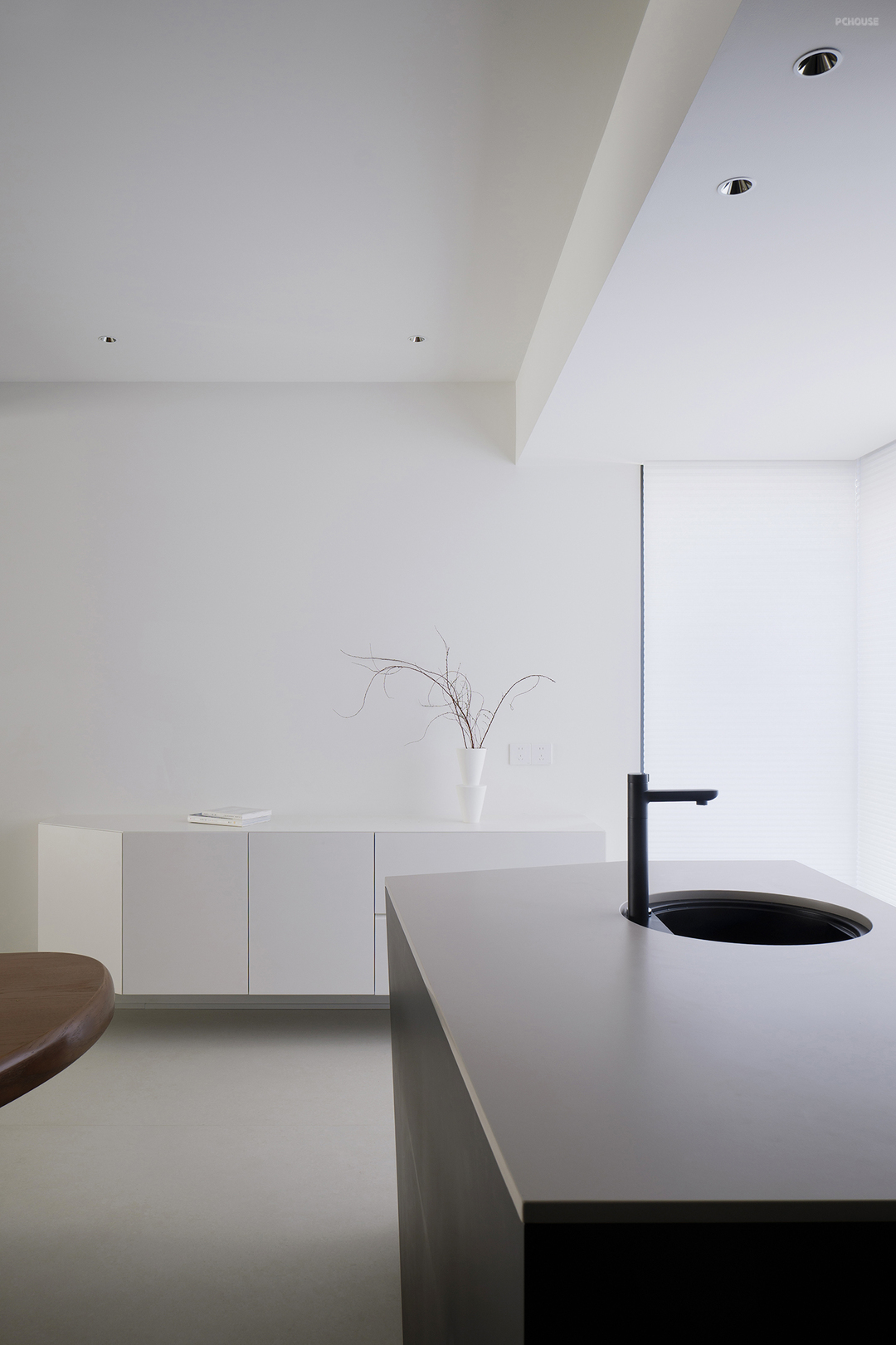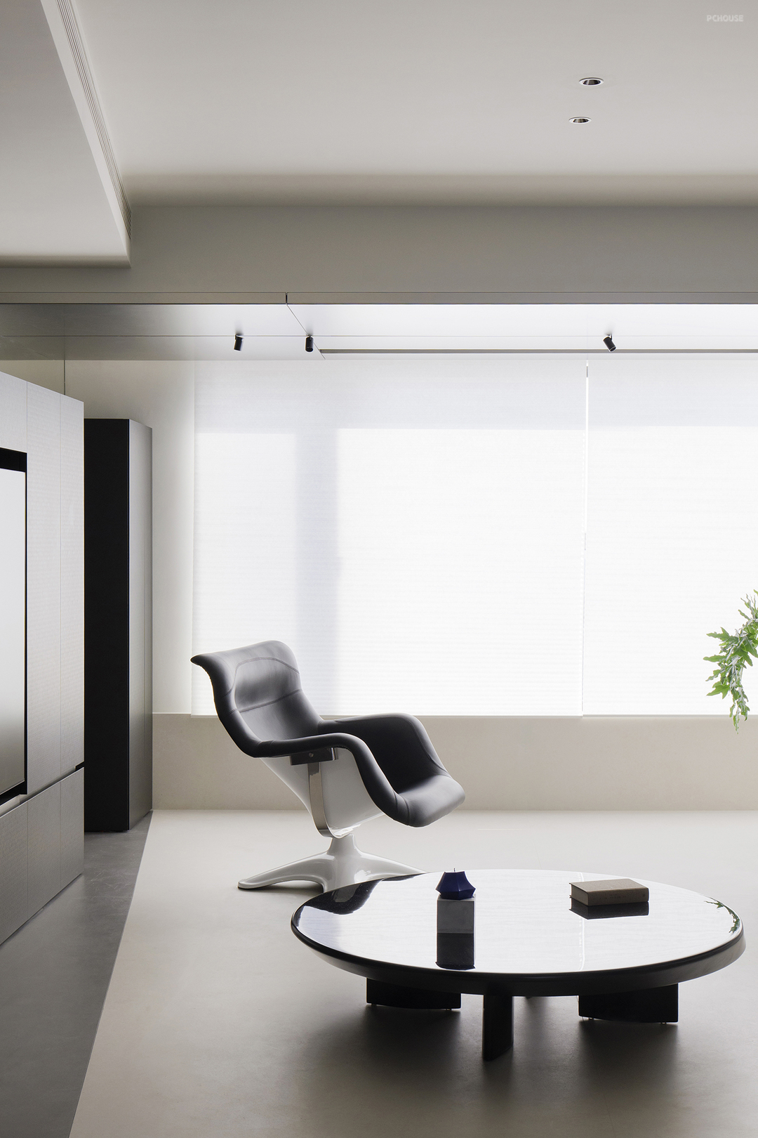 轻盈如昼,流淌着敞亮自由的白,裹挟着金属的冰冷触感,将光的柔软与金属的坚韧交织为一,折射出一种既疏离又亲近的氛围——它疏离于喧嚣的世俗,却亲近于居者内心的秩序与澄明。