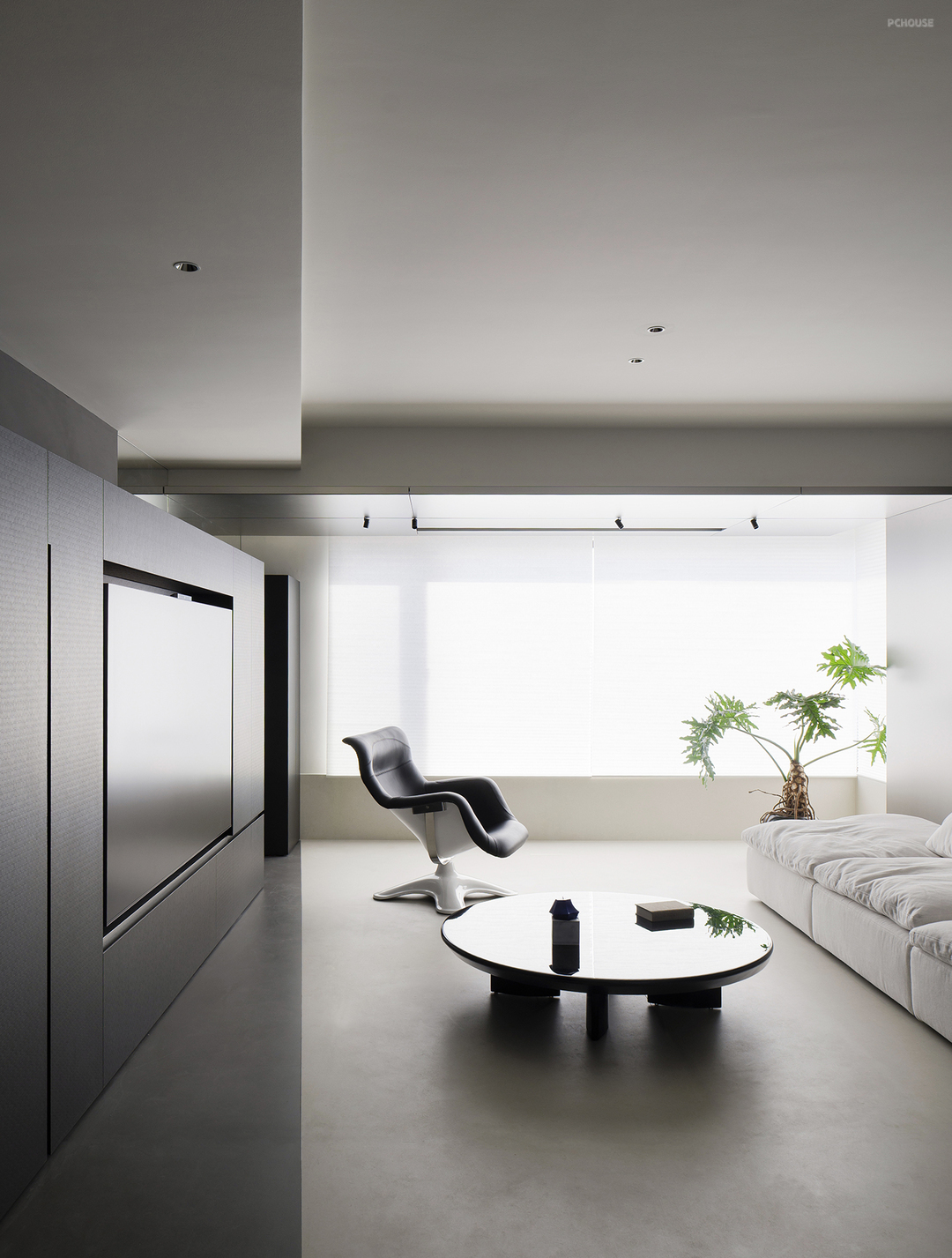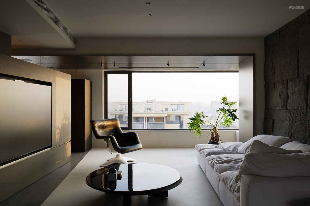 黑色的电视柜以一种低调的姿态退守,既释放了视线的高度,又让空间得以呼吸。