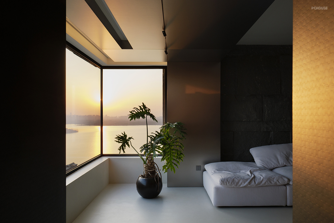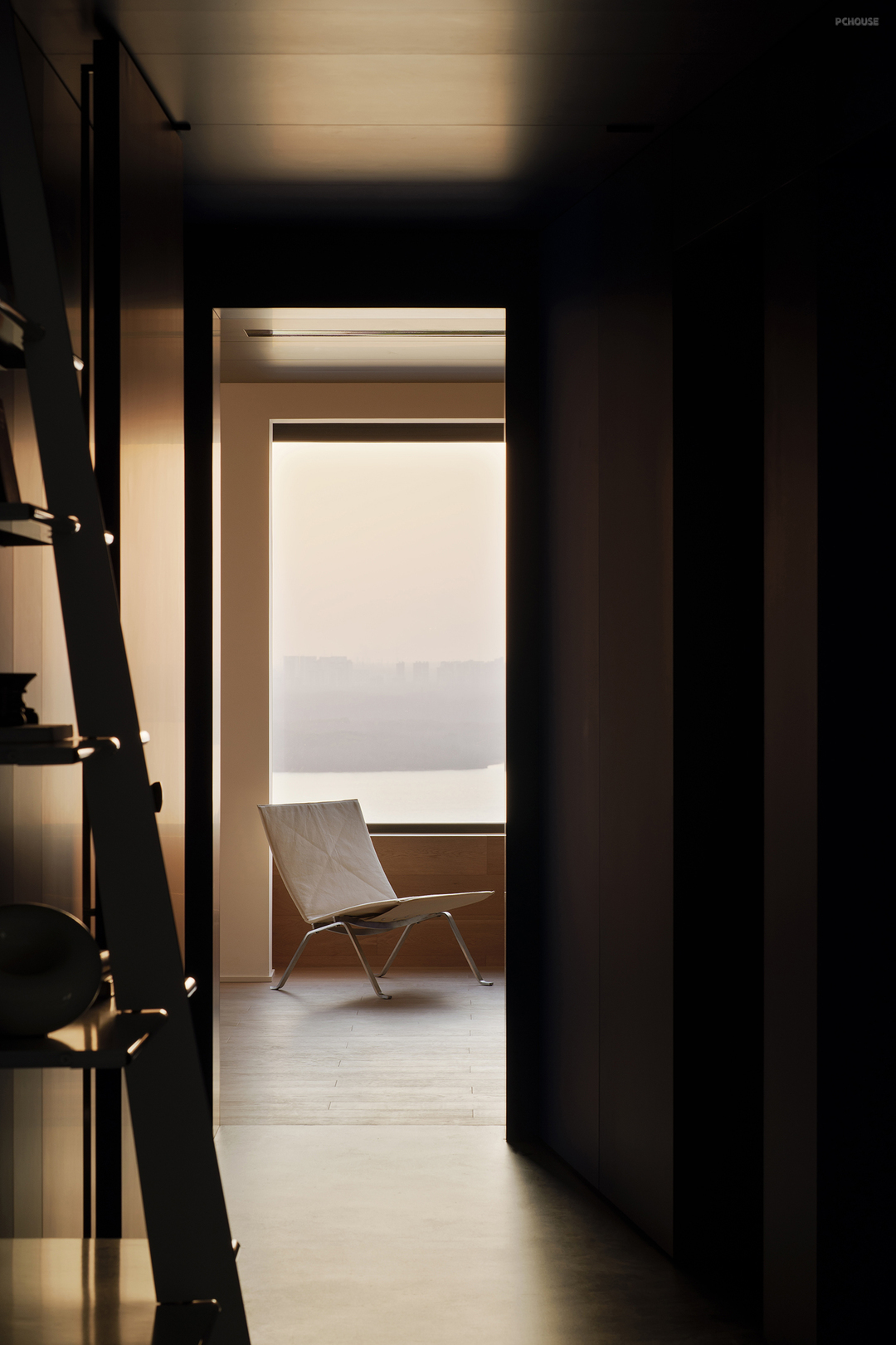 目光穿越光影的层次,指向终端的开窗,步伐也变得轻盈而充满期待。湖面在窗前铺展开来,似一面流动的镜,映衬着天光与夜色的交替,粼粼波光勾起一种对自然的深切渴望,仿佛在低语,召唤着居住者一步步靠近。