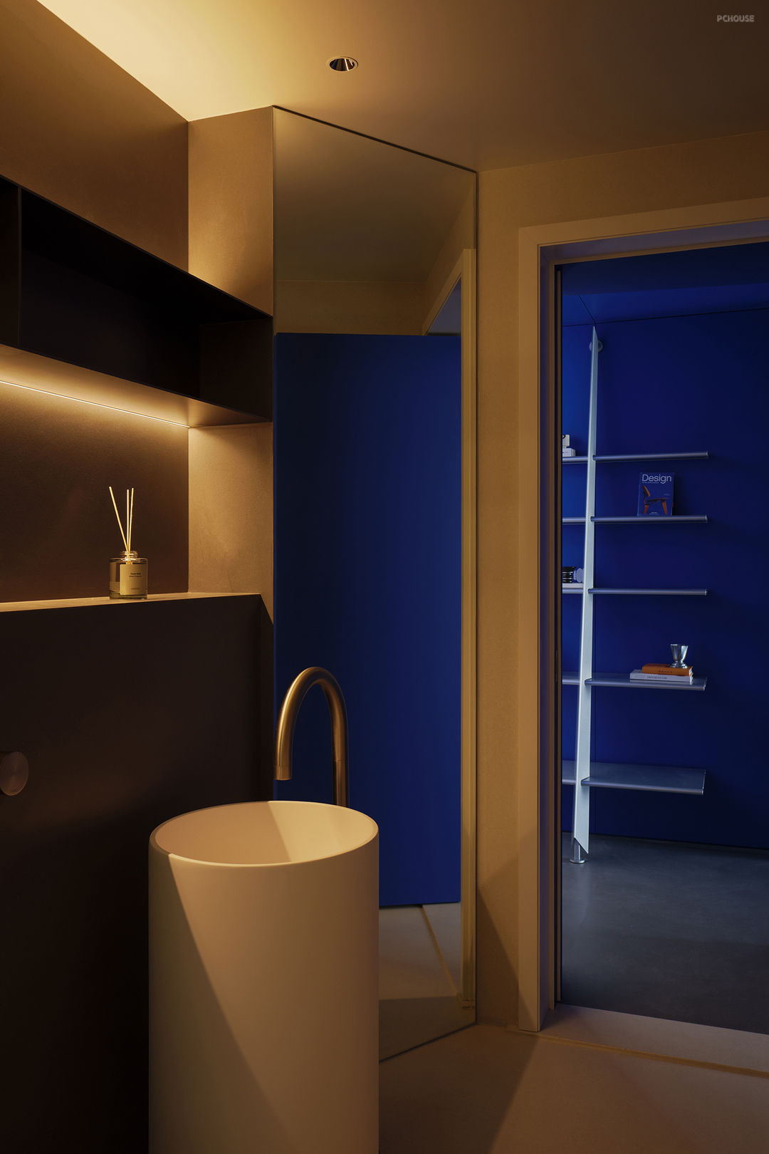 屋主钟情于蓝色,那是一种深邃而热烈的克莱因蓝,仿佛从海的深处淬炼而出,饱含力量与温度,贯穿于居室的每一处细节,成为视觉与心绪的锚点。