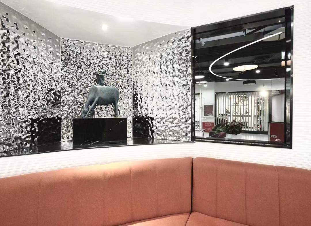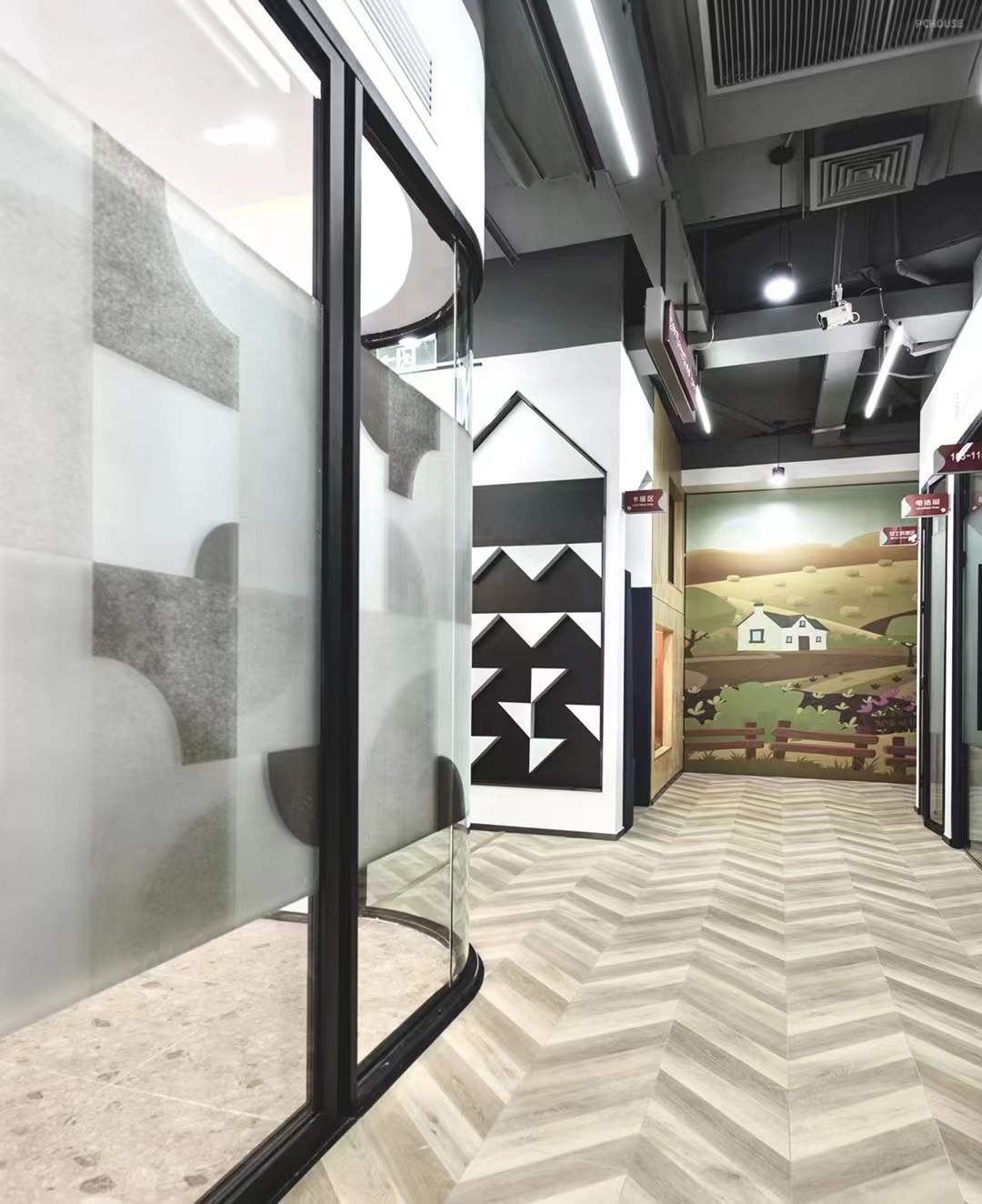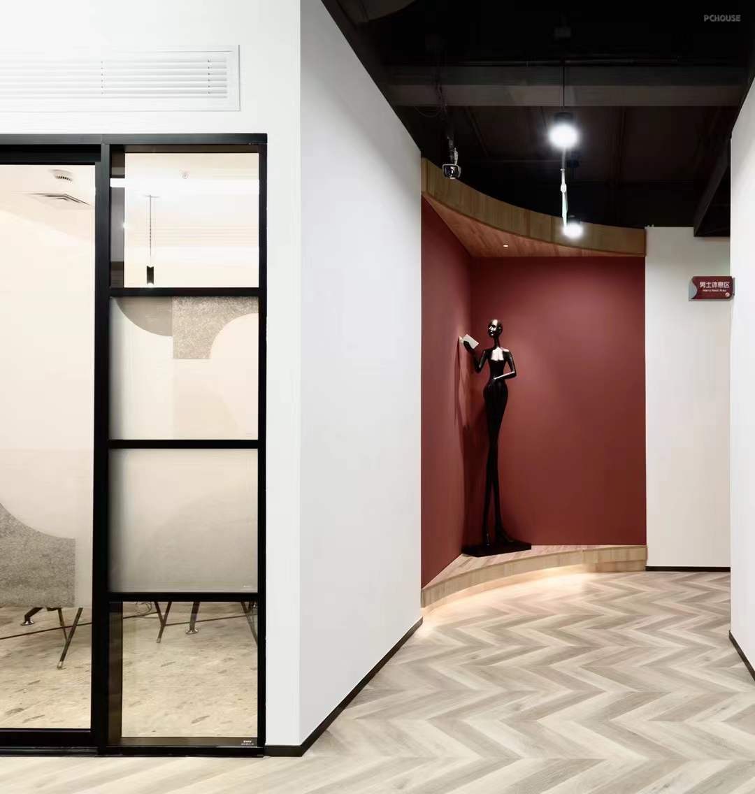 现场条件:原有顶面暖通设备保留、LOGO背景墙使用原有片区造型,入口公区原有地面瓷砖保持原有。