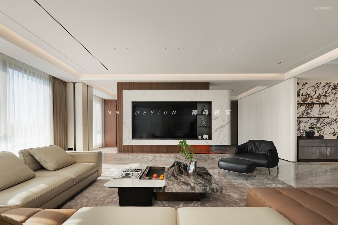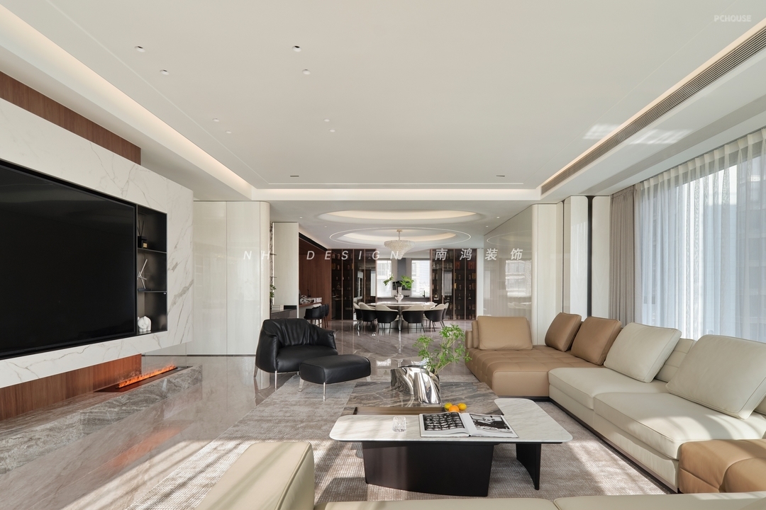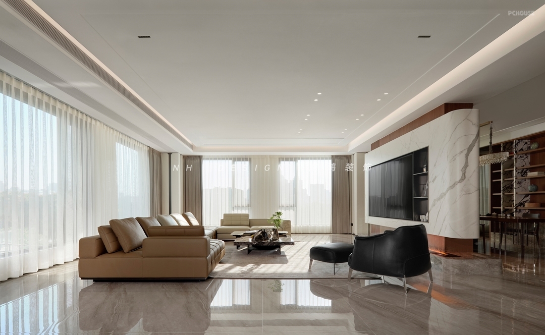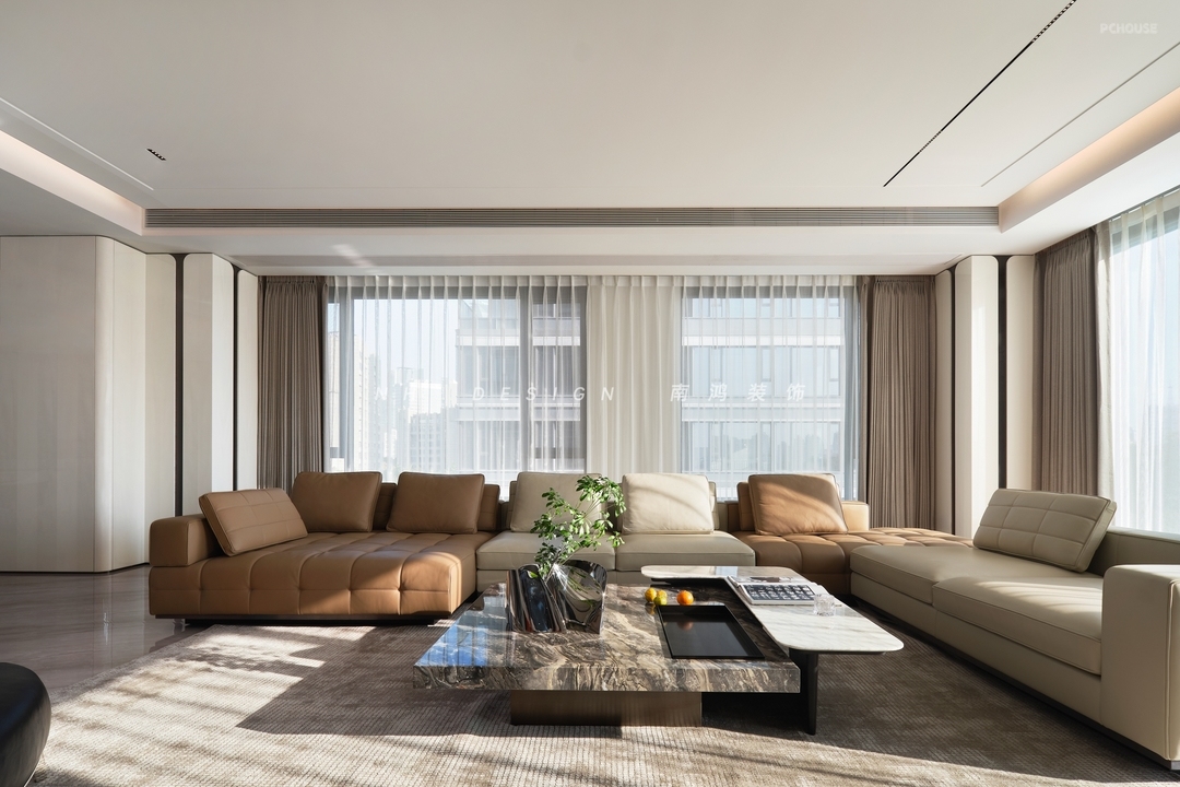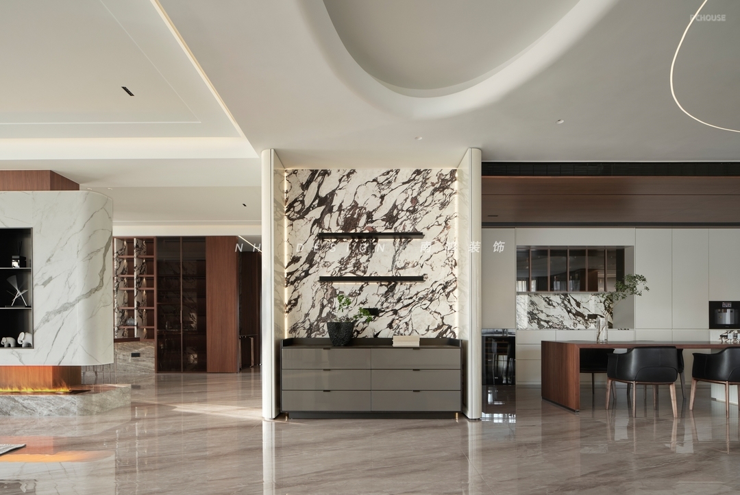 前言: 500方的平层天然带着景观与格局上的大优势,设计师通过对业主的家庭结构、生活习惯、居住诉求、风格偏好等深入洞察,以理性专业又不失感性温柔的笔法,为他们构筑起这所承载丰满理想的美好居所。