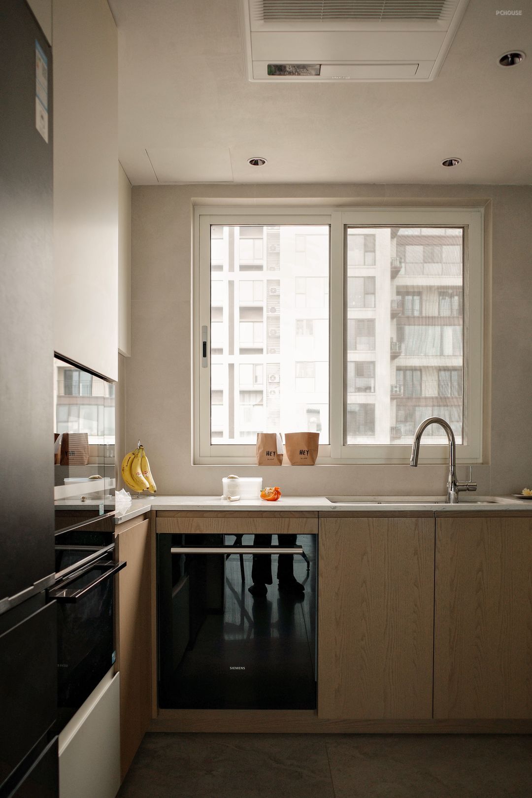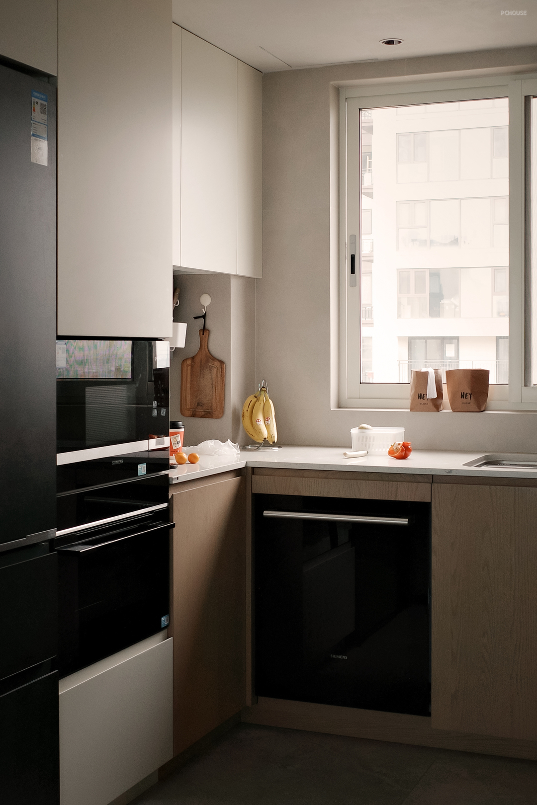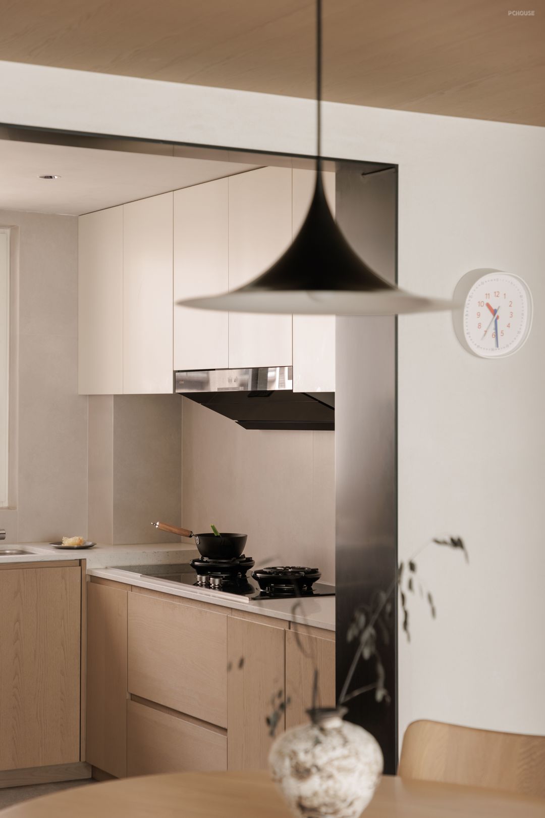厨房的意义不止于功能,更是一种生活的隐喻。L型动线流畅自如,黑色金属框架在界定区域的同时不割裂视线,开放与围合恰到好处。窗外的光影、烹饪的节奏、食物的温度,让人与空间产生细腻的互动,于一餐一饭间感受日常的诗意。