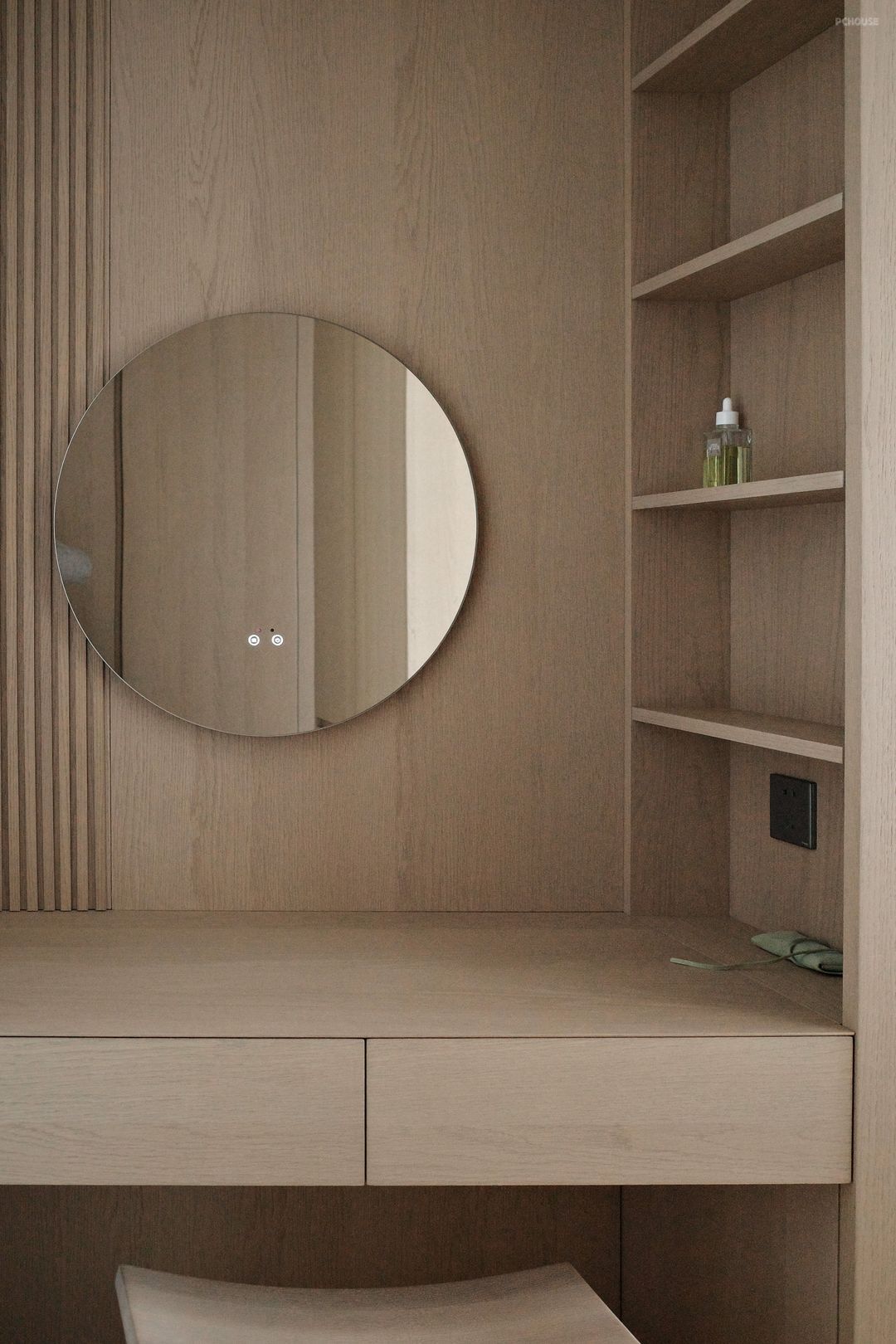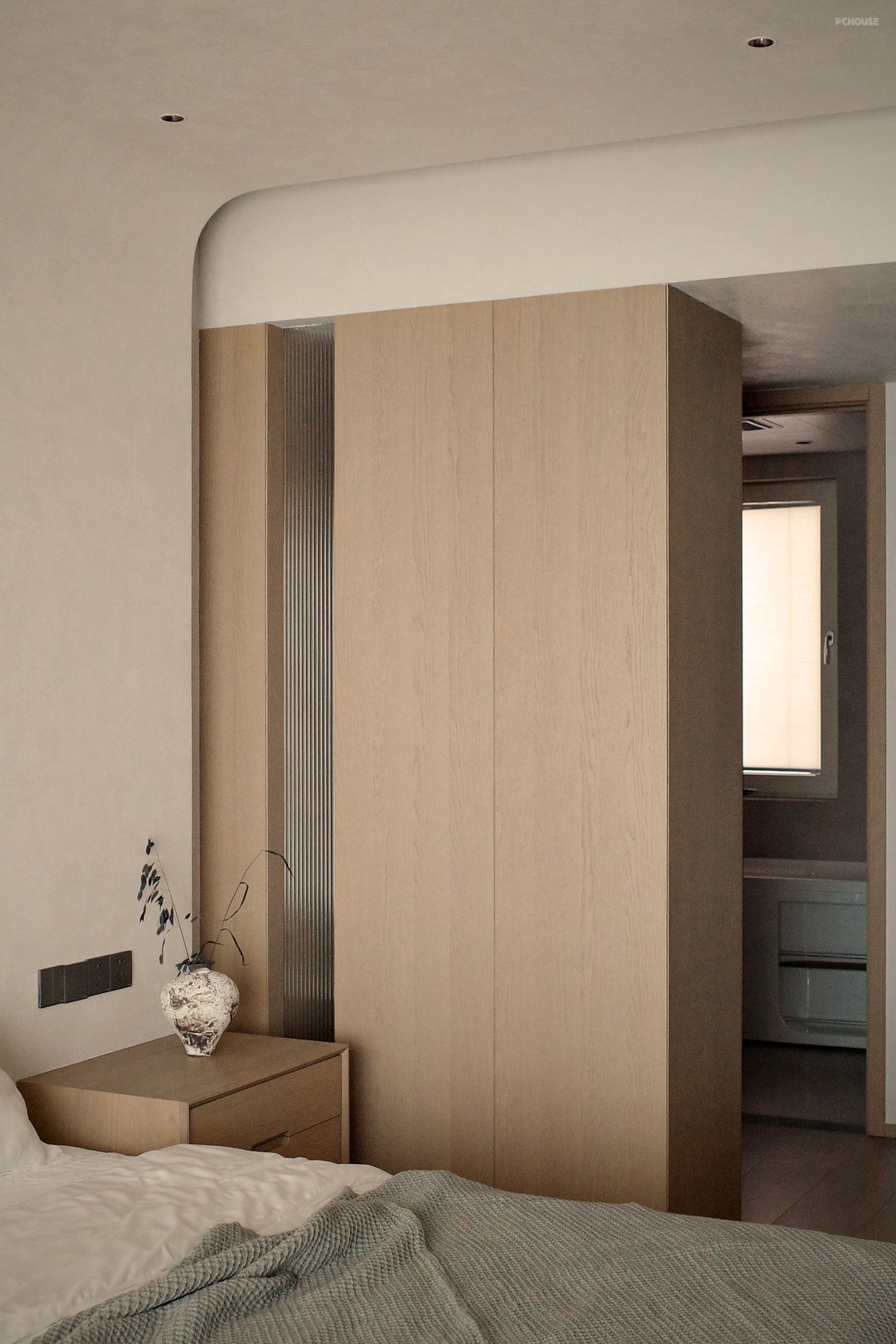 The walk-in closet serves as a transition, connecting the master bedroom to the bathroom, defining privacy and providing ample storage space. The delicate texture and the rhythm of light and shadow make the whole space full of layering, and also give the occupants a pure sense of ritual.