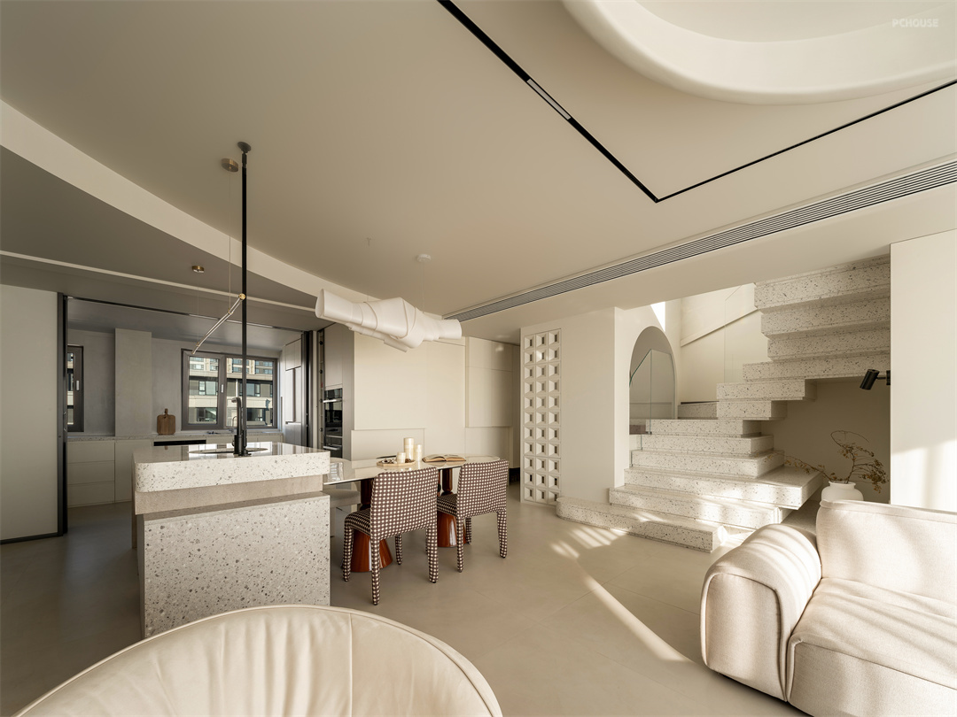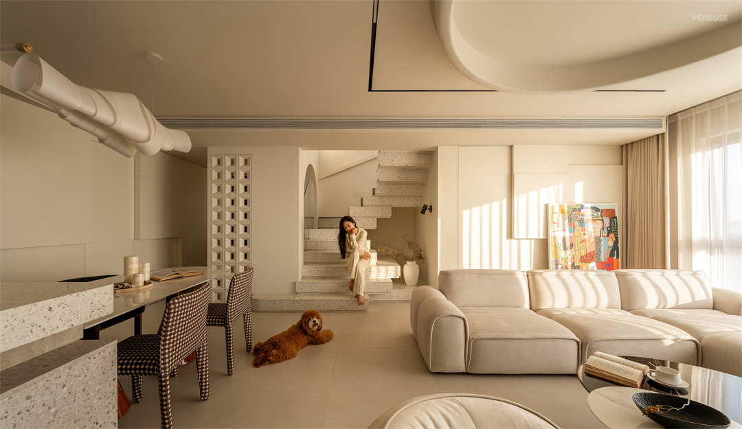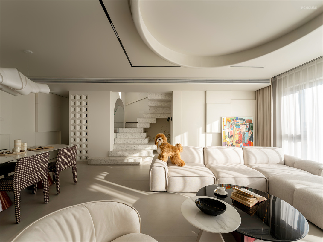 前言: 在沈阳这座充满活力的城市中心,有一处 170 平方米的洋顶户型,宛如一颗等待雕琢的璞玉。屋主人是两位 90 后城市精英,他们带着海外生活的独特阅历,怀揣对家的无限想象,与我们相遇。更有一只可爱的可卡布狗狗,为这个家增添灵动生机。他们对家的憧憬,绝非千篇一律的奶油风所能承载,而是渴望一个极具设计感、能彰显个性的空间。于是,一场解构主义与奶油风交织的设计之旅,在这里悄然拉开帷幕。