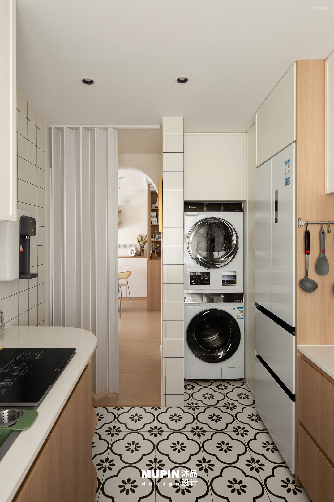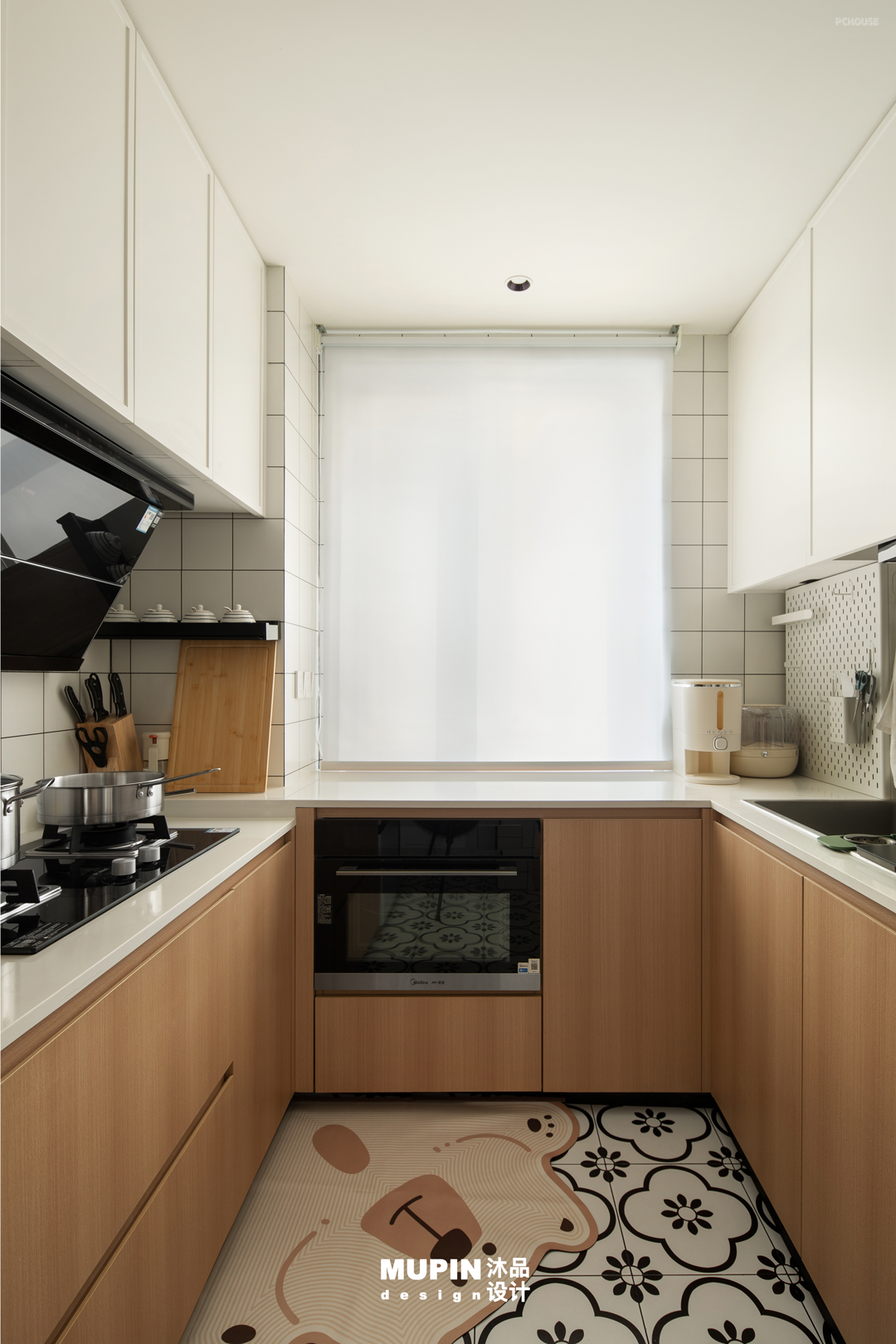②对厨房进行扩容,采用 U 型橱柜设计,增加操作台面和收纳空间。