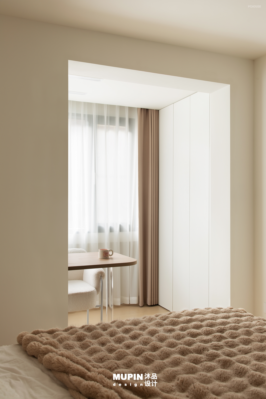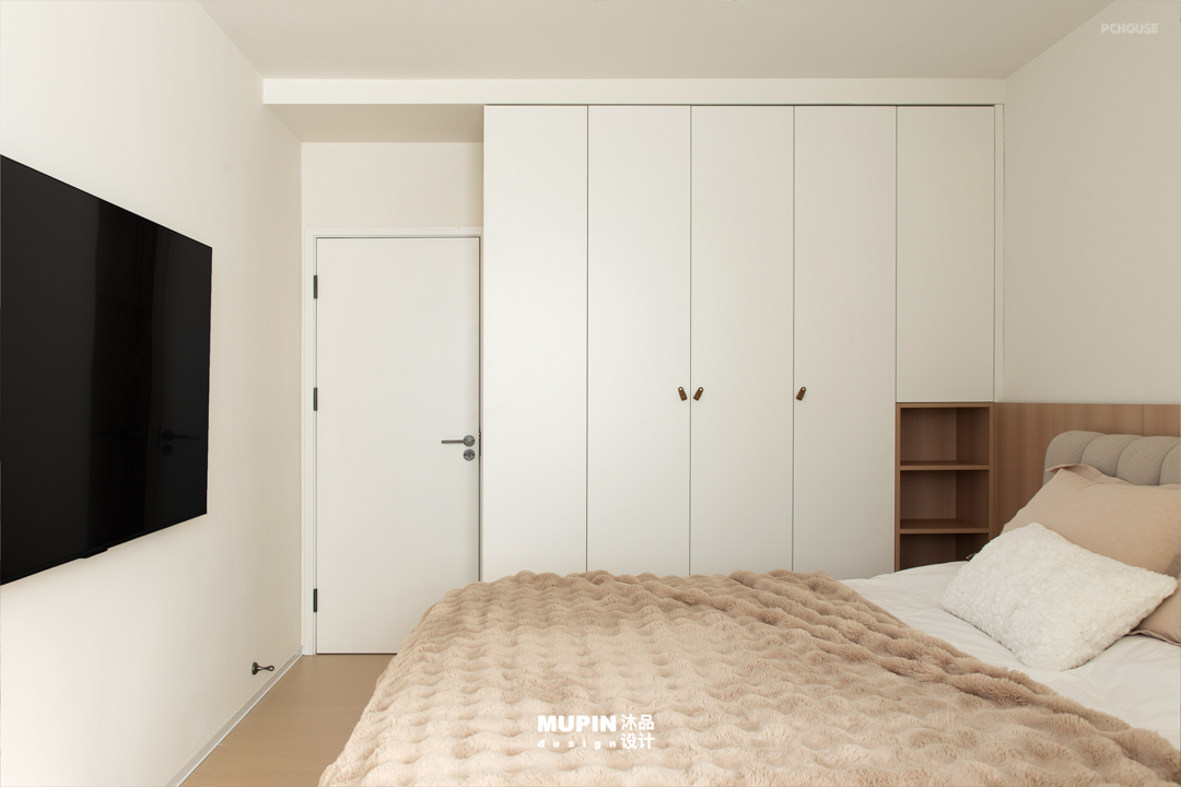 ③在主卧和次卧分别定制衣柜,充分利用墙面空间,提升收纳能力,同时优化卧室的动线,让居住更加便捷。