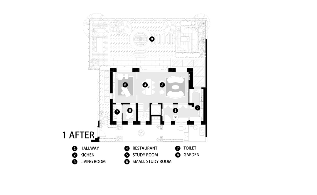 客厅、餐厅与书房和花园,虽各自有边界,却也合成开放、流畅,我们设计师毫无吝啬地创造洄游动线,并巧妙处理空间中的各处视线关系,让每一个细节都经得起推敲,起承转合耐人寻味