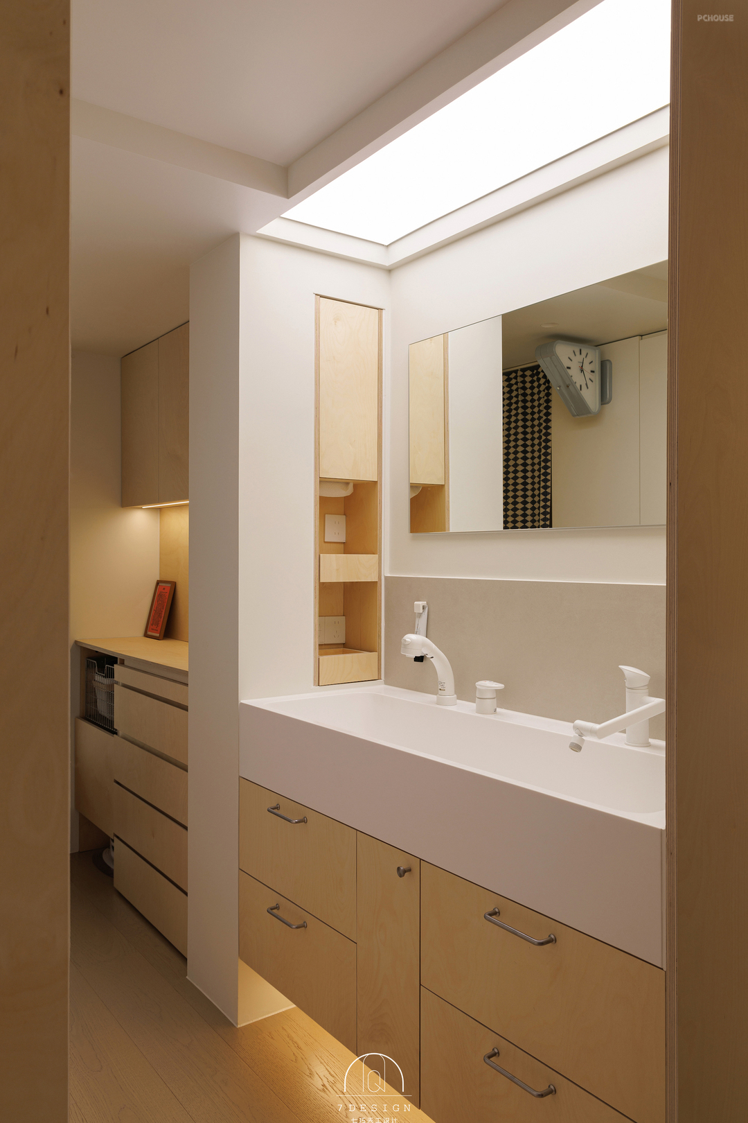 洗手池也在入口旁边,可以两人同时使用,内嵌杂物柜,不会磕碰,收纳增加了免弯腰壁龛抽屉和柜内电源等很多更省力的小设计。