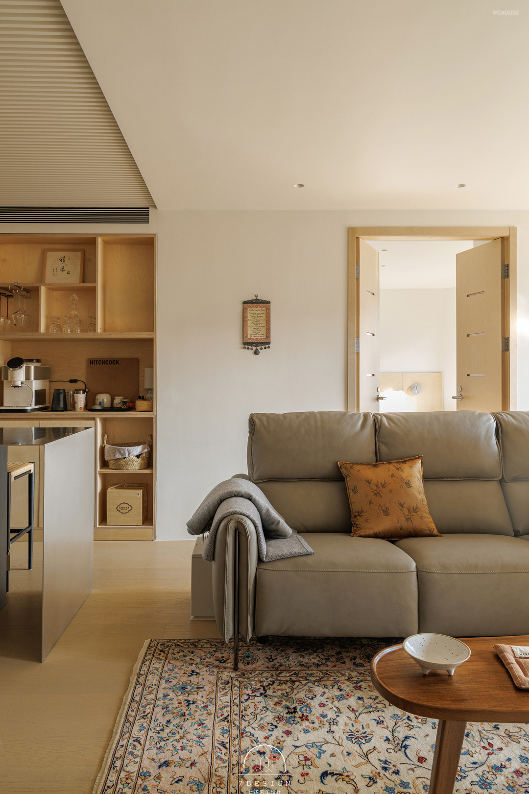 原先的客厅不大,设计师是把原来南向的两处小房间拆进公区来放大效果。