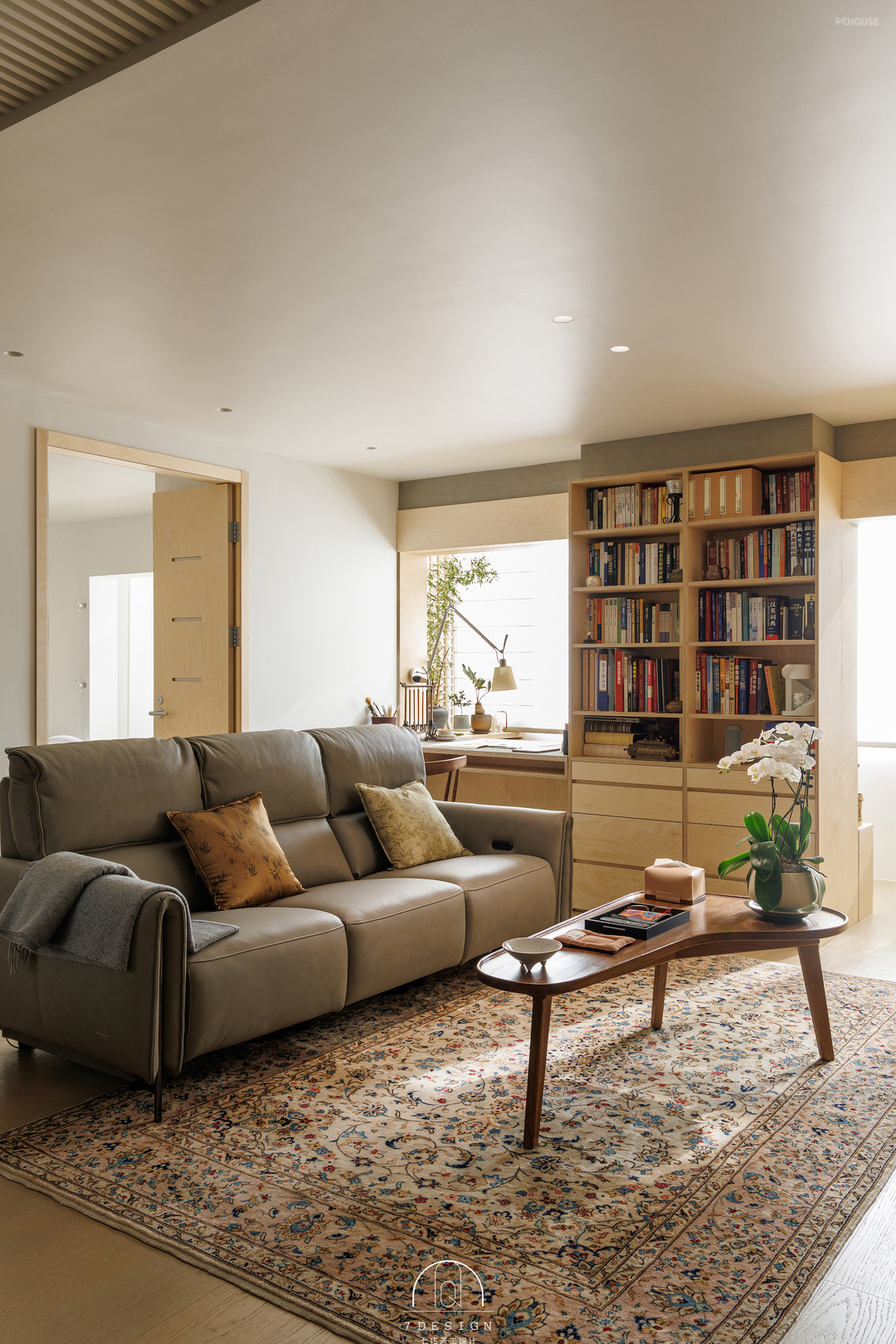 最后,这个改头换面的新家,综合两代人的审美和生活,既保留了长辈喜欢的传统稳重,也融入了年轻人带来的现代温润,有传统的书香门第气质,也有现代木质的温柔包容,处处充满了爱和彼此关照的痕迹。