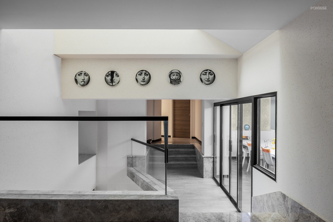 该项目最大的难点在于有两层都位于地下两层,我们将原有的楼板打通,将光线引入。整个空间采用大面积留白,让生活艺术化的方式移步换景,每一个独立空间都有来自全世界各个设计师的单品,向光而居。满足业主两人和三只猫在整个房屋的实用,业主居家办公的特点也是我们需要考究的。