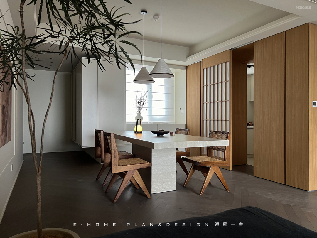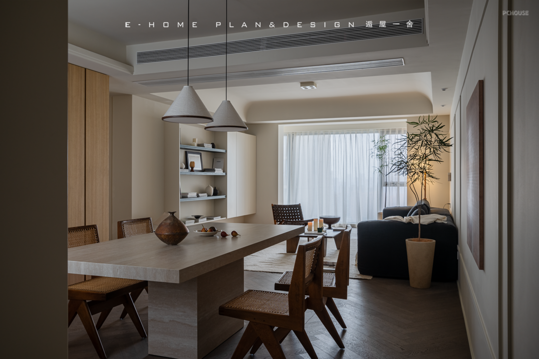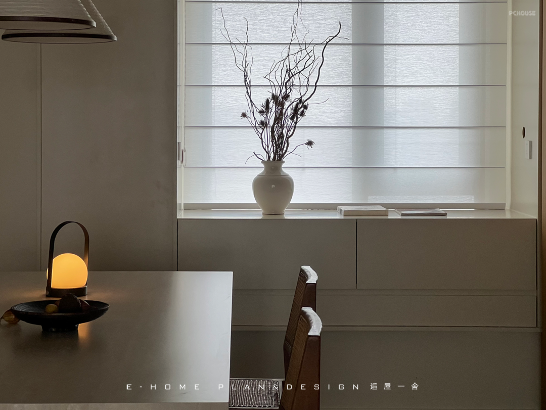 客餐厅是通体的,玄关仅仅一瞥就转折进来,少了生硬的隔断,只有功能上的微妙转换。