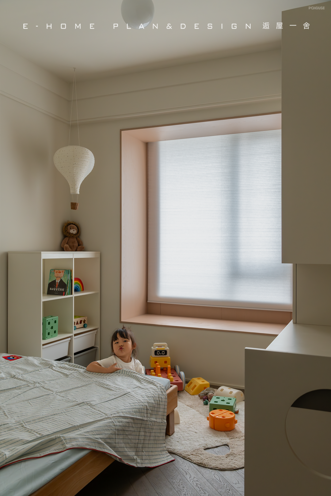 房间明亮又柔和,成为姐弟俩共同成长的温馨角落,安全的守护+自由的探索,是儿童房的隐喻。