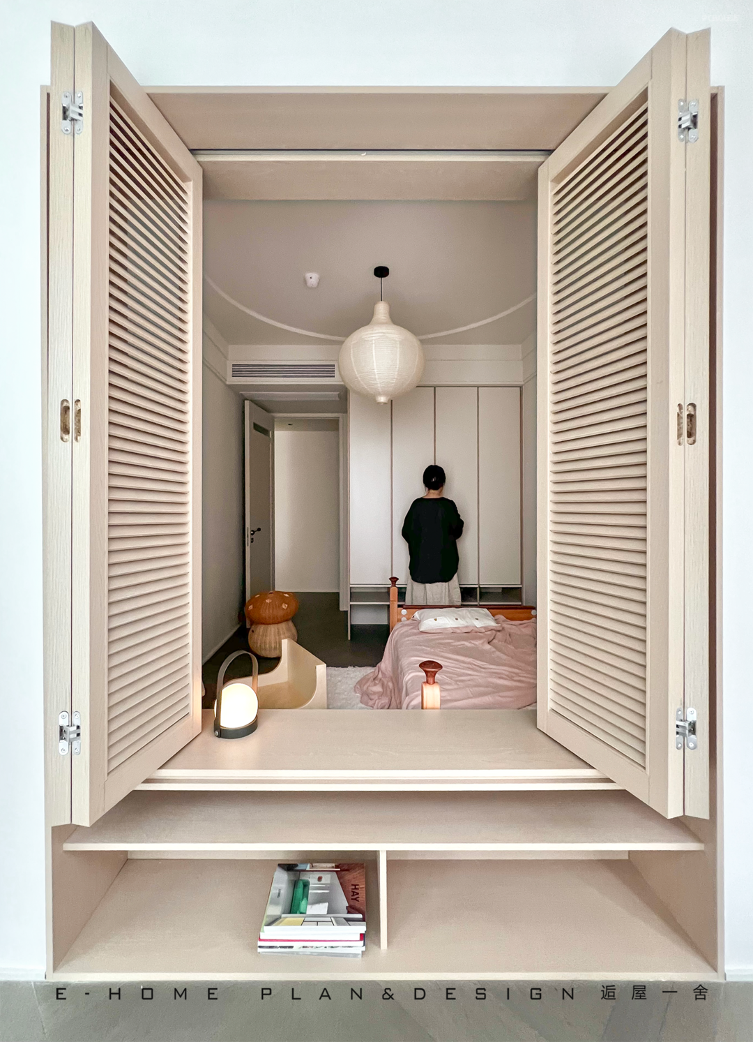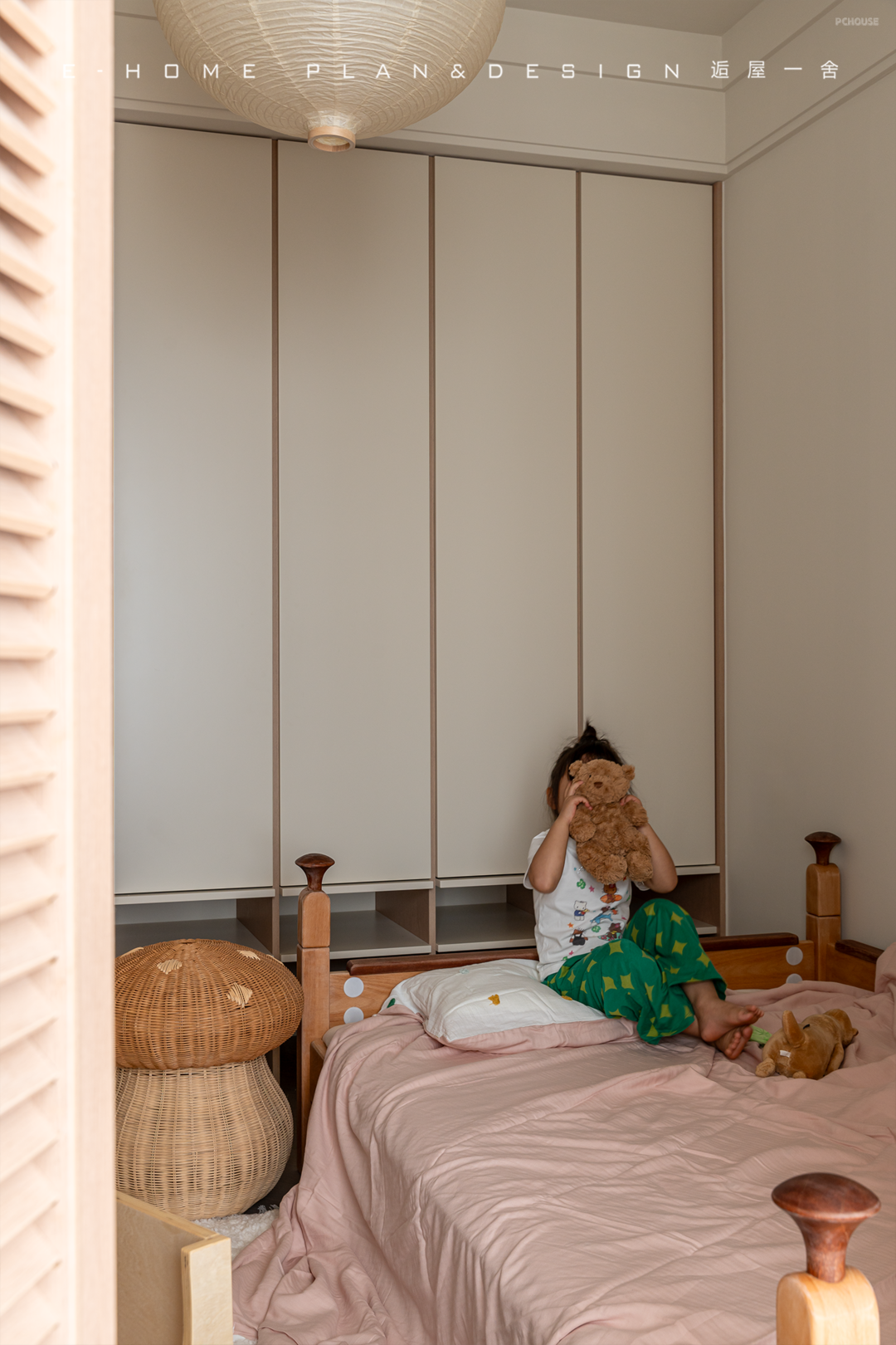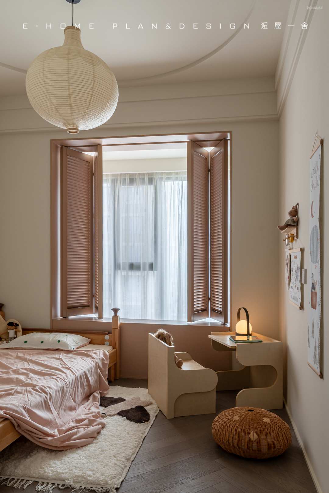姐姐的房间与客厅相邻,设计师利用两个房间共享阳台的特性,在它们之间安装了一扇可折叠的木质窗户——打开时,孩子可以翻窗进阳台,像一场小小的冒险;关上时,它又变回安静的隔断,让卧室保有私密感。