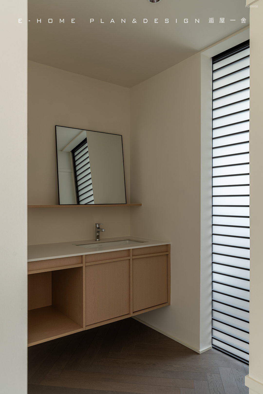 厨房内并无改动,但在入口处,一扇吊轨滑门划分空间——浅色木格栅拼接米色宣纸,透光不透影。门推开时,隐约可见厨房内的天光;合上时,便成了一幅虚实交错的立轴画。禅意,不再是高不可攀的意境,而是化作了穿堂而过的微风,伴随着每一顿平凡却温暖的餐食时光。